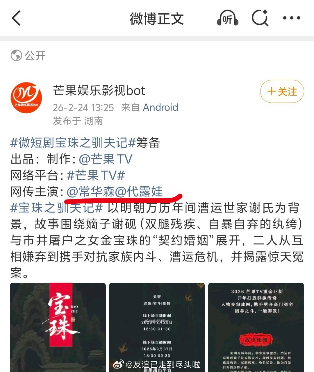 代露娃这部芒果tv的这部剧是和常华森二搭?那粉丝快别骂了,这部再掉饼就亏了 代露娃 短剧