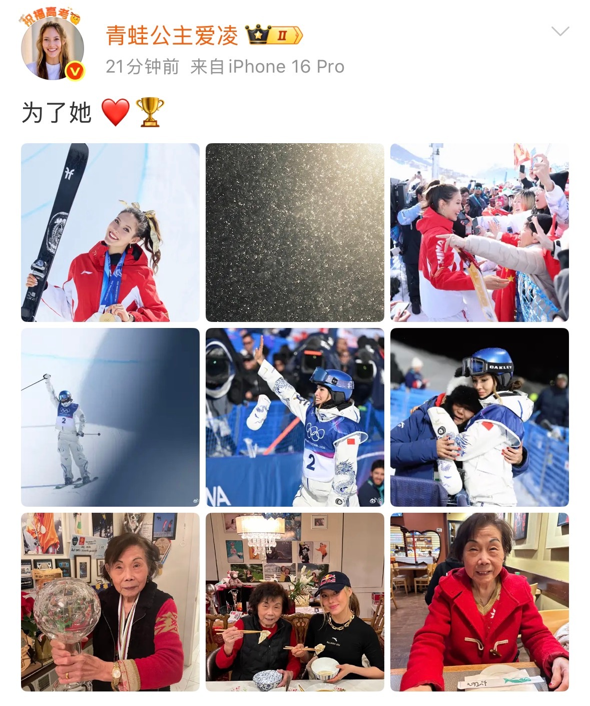 谷爱凌发博悼念奶奶谷爱凌晒与奶奶旧合照 谷爱凌晒照悼念奶奶并配文:“为了她 ❤️🏆”谷爱凌晒合照怀念奶奶