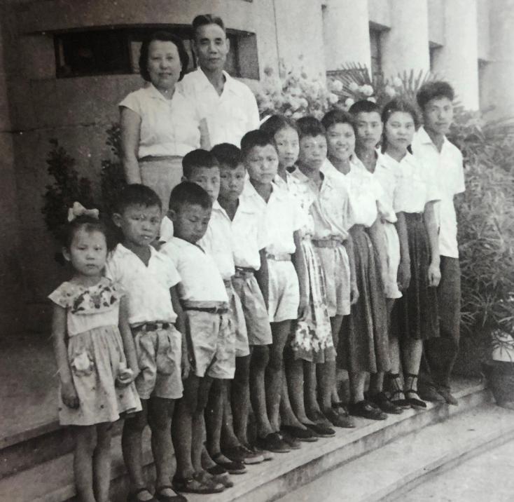 1961年,炮兵副司令员吴信泉和妻子俞惠如及子女在军委炮兵司令部办公楼前合影,让人最印象深刻的是他什么共有12个孩子。要知道,在烽火连天的岁月里,俞惠如先后生下了12个孩子(8子4女),无一夭折,堪称奇迹。她的付出赢得了广泛赞誉,周恩来总理曾风趣地称吴家是“航空母舰带编队”,毛泽东主席则称赞俞惠如为“英雄母亲”。
