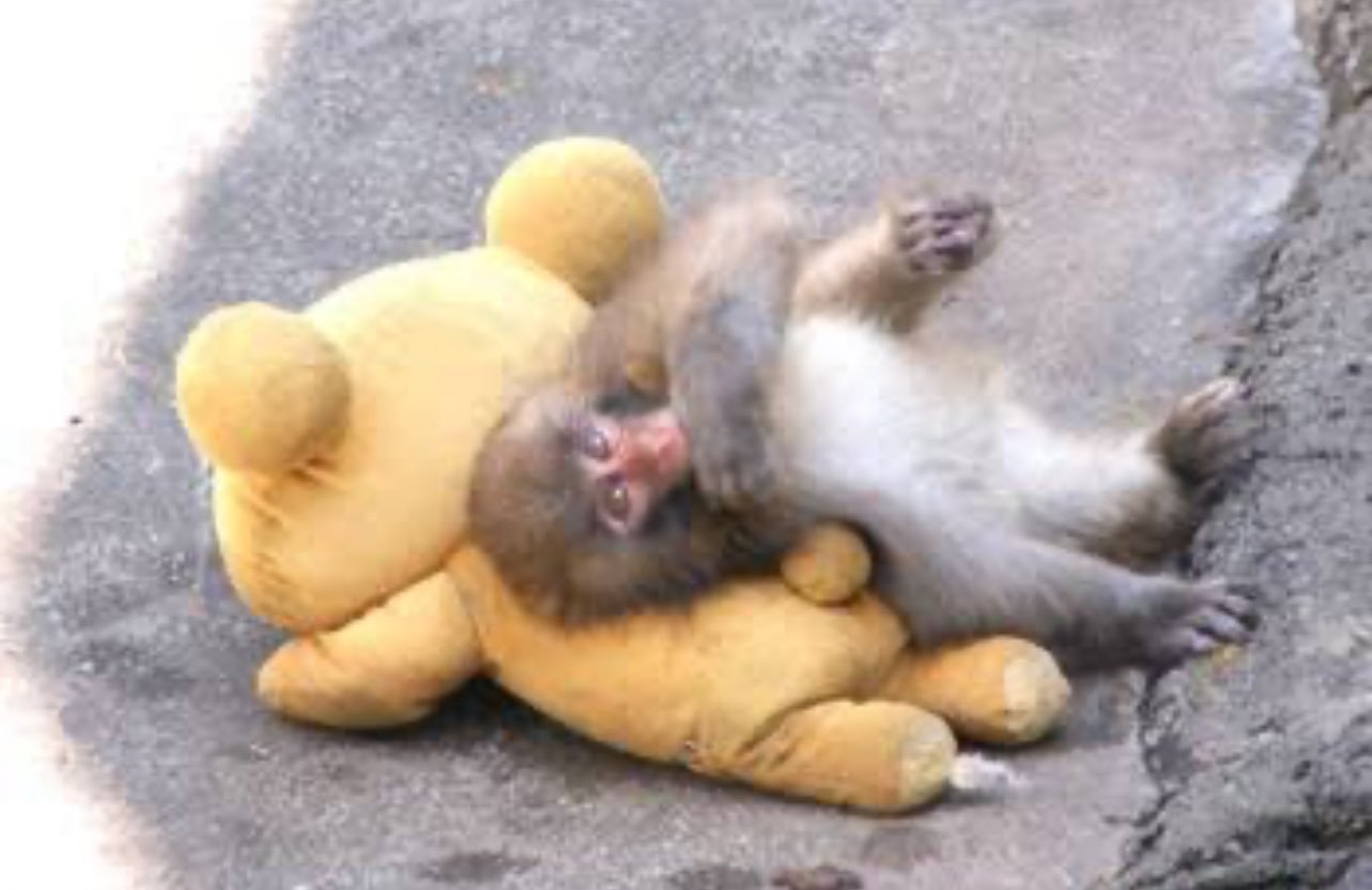2008年,日本市川市动物园,一只名叫オトメ的小猴子在出生后被妈妈抛弃,无奈之下,饲养员们只能用一只轻松熊玩偶暂时代替猴妈妈来安抚小猴。在人工饲养一段时间后,动物园将小猴放回猴群,让她学习融入猴子社会,在这个过程中,小猴依然十分依恋陪伴自己长大的轻松熊玩偶,到哪里都要带着玩偶。在一段时间的学习后,小猴成功融入了猴群,并有了自己的后代。在2025年,市川市动物园再次出现了被猴妈妈抛弃的小猴Panchi,饲养员们用宜家猩猩玩偶代替母亲陪伴,并在Panchi半岁时将其放回猴群,由于小猴子拖着玩偶的画面太可爱可怜,Panchi一下子成为了全球最火的网红猴。目前Panchi正在努力学习和其他猴子社交,并且慢慢拥有了猴朋友。希望小panchi也能健康成长。