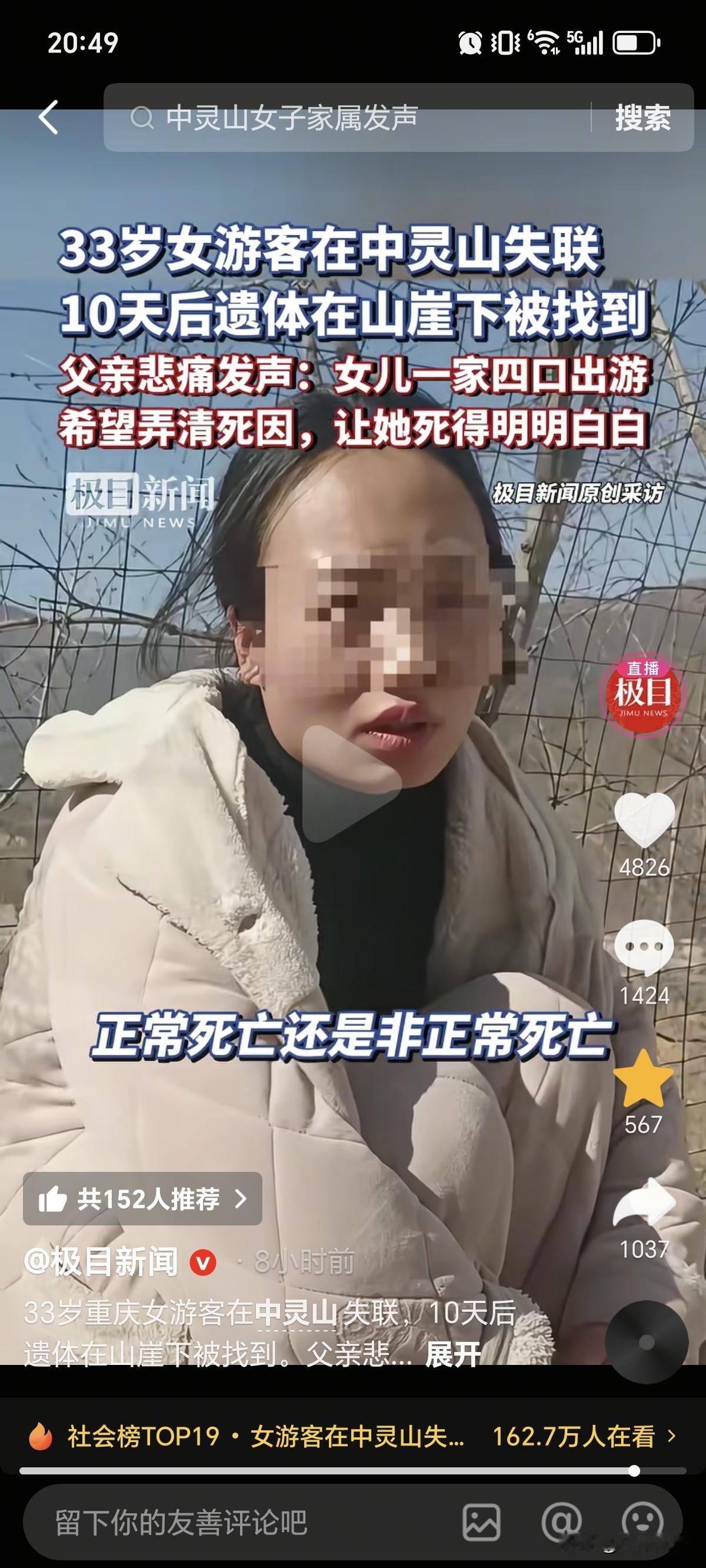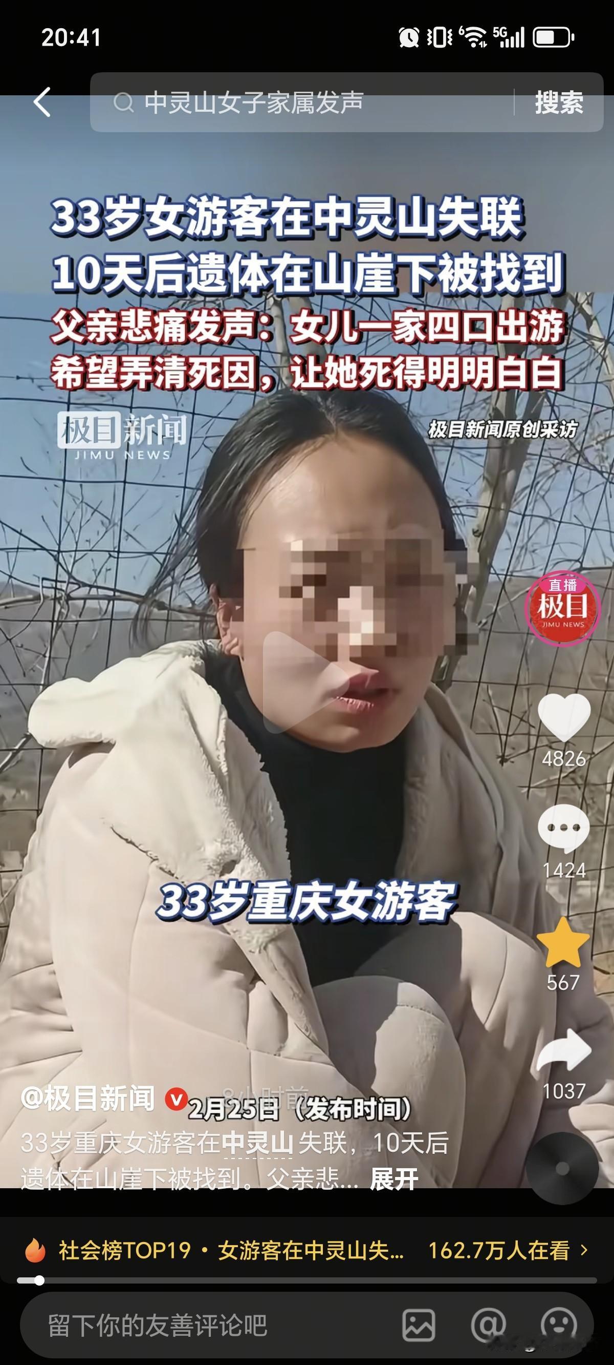 2月24号,在河南中灵山失联10天的33岁重庆女子找到了!遗体位置是在距离山顶200多米的山崖下,25号父亲质疑:虽然法医说是从高处坠落身亡,但还是想弄清楚怎么回事,到底是正常死亡,还是非正常死亡,让她走的明明白白[泣不成声]。 众所周知,这是夫妻带2个孩子一起来爬山,那么通过采访的内容可以判断,女子父亲对女婿的某些行为有所怀疑。其实也理解,毕竟太奇怪了,不符合正常人的逻辑。 比如:作为外地人根本不会选择这种没啥名气,也没啥景色的景区,那么选择这个会不会原因只有一个呢?游客少,目击者少,景区配套不完善,摄像头少。而且正常人不会大晚上不下山,更不会特地强调老婆神情恐惧(纯属画蛇添足)…。 当然以上只是悲观的臆想。 但不排除真的就存在巧合发生,爬山过程中,走丢了,着急忙慌意寻找家人意外坠崖,毕竟夫妻能够养育2个孩子,相信感情也是非常恩爱。不过也请男人要理解丈人的猜疑,好好解释清楚,并协助帽子叔叔调查真相,后面也要多来往,共同把2个孩子抚养长大才是正事。
