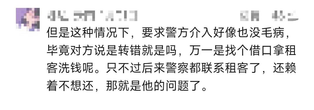 好在化险为夷了。 近日,苏州工业园区李女士将69万公款误转给曾经的租客,对方答应退钱,后改口必须派出所通知才退钱。无奈,李女士报警。苏州公安联系对方,对方说“你管得着吗?”李女士最终远赴云南,在当地警方见证下,追回款项。 李女士的工作太马虎了,69万巨款不核对吗?说打给谁就打给谁,这是无关人员,如果打给自家人,那事就大了。 转入方的处理是对的,虽然账户的钱不是自己的,但是有保管责任。警方介入,首先要证明身份,现代的科技水平,电话,视频都可以造假。不退就属于不当得利,会涉嫌犯罪。