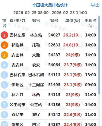 【风沙】今天08-14时,青海、内蒙古、吉林的部分地区出现了8-10级阵风。内蒙古巴林左旗、青海托勒、吉林天池,排在阵风榜前三。大风也使得吉林西部出现沙尘,四平、松原,14时PM10超过400微克/立方米,出现了严重污染。