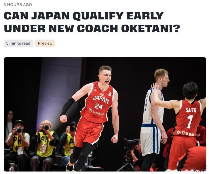 该前瞻指出,在FIBA主办的比赛中(亚锦赛、世界杯和奥运会,不包括亚奥理事会举办的亚运会),自1936年以来,日本男篮对华战绩仅为可怜的2胜19负,一场是1936年柏林奥运会,另一场就是2024年的亚洲杯预选赛主场76-73险胜中国男篮,那也是中国男篮时隔88年在FIBA比赛中首次输给日本男篮(不包括亚运会)。