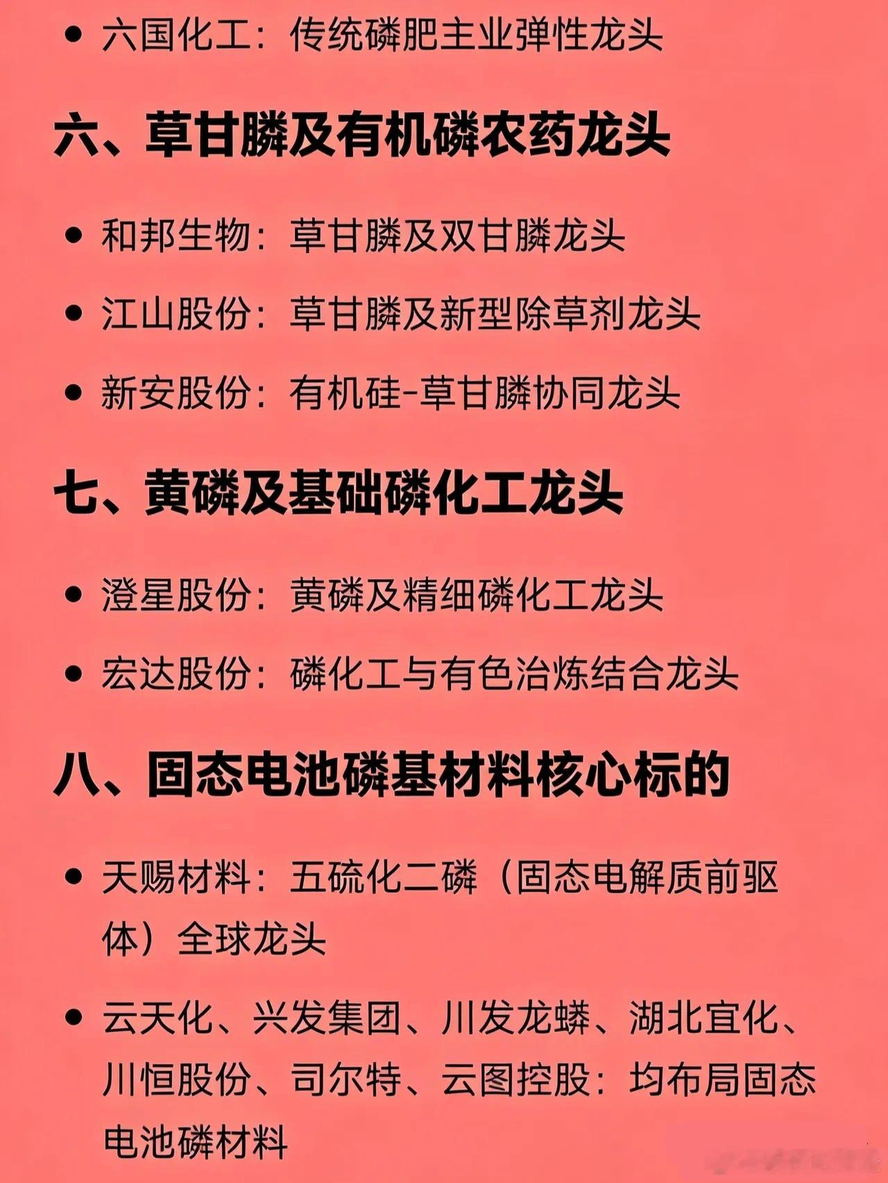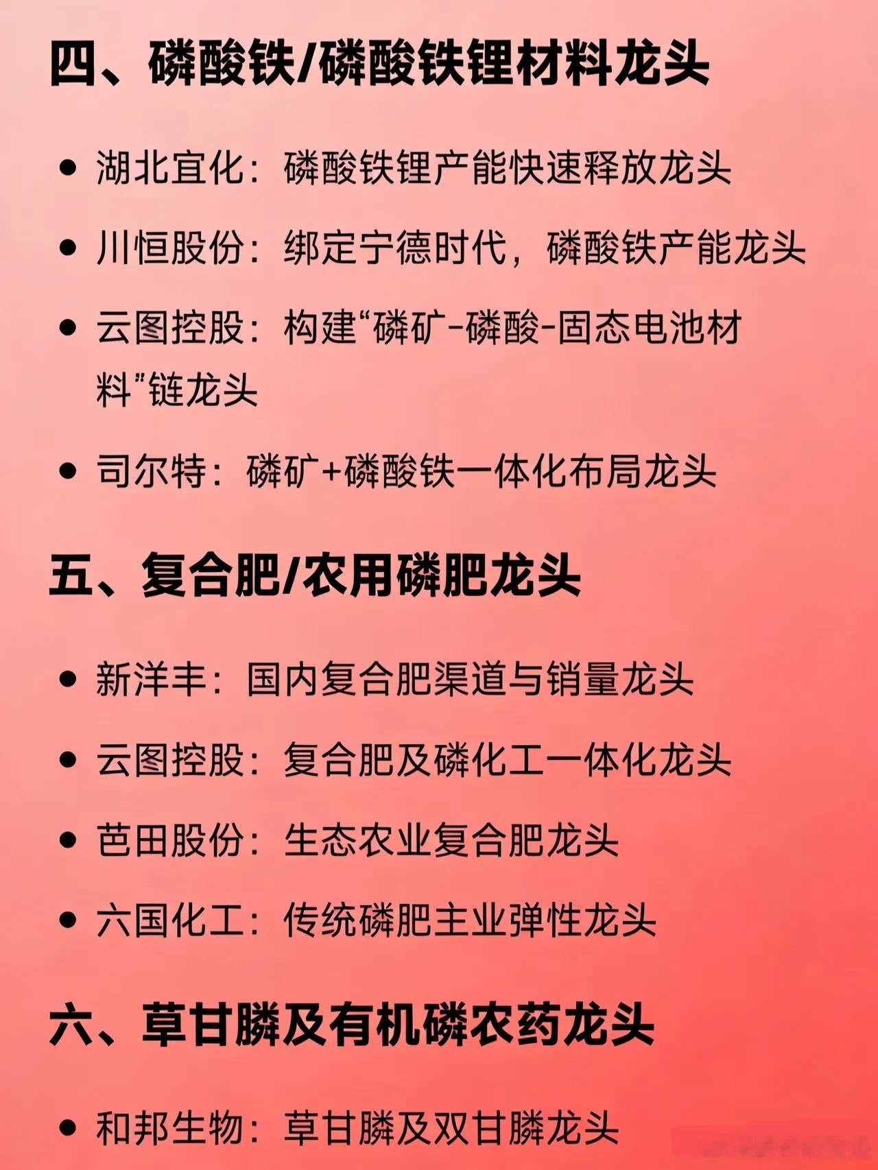 化工细分领域大全:磷化工:云天化、川金诺、川发龙蟒、和邦生物、金正大、澄星股份、
