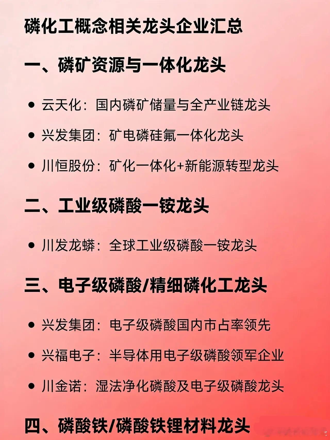 磷化工产业最近利好不断,相关概念股值得关注。磷化工生产的产品对农业和新能源很关键