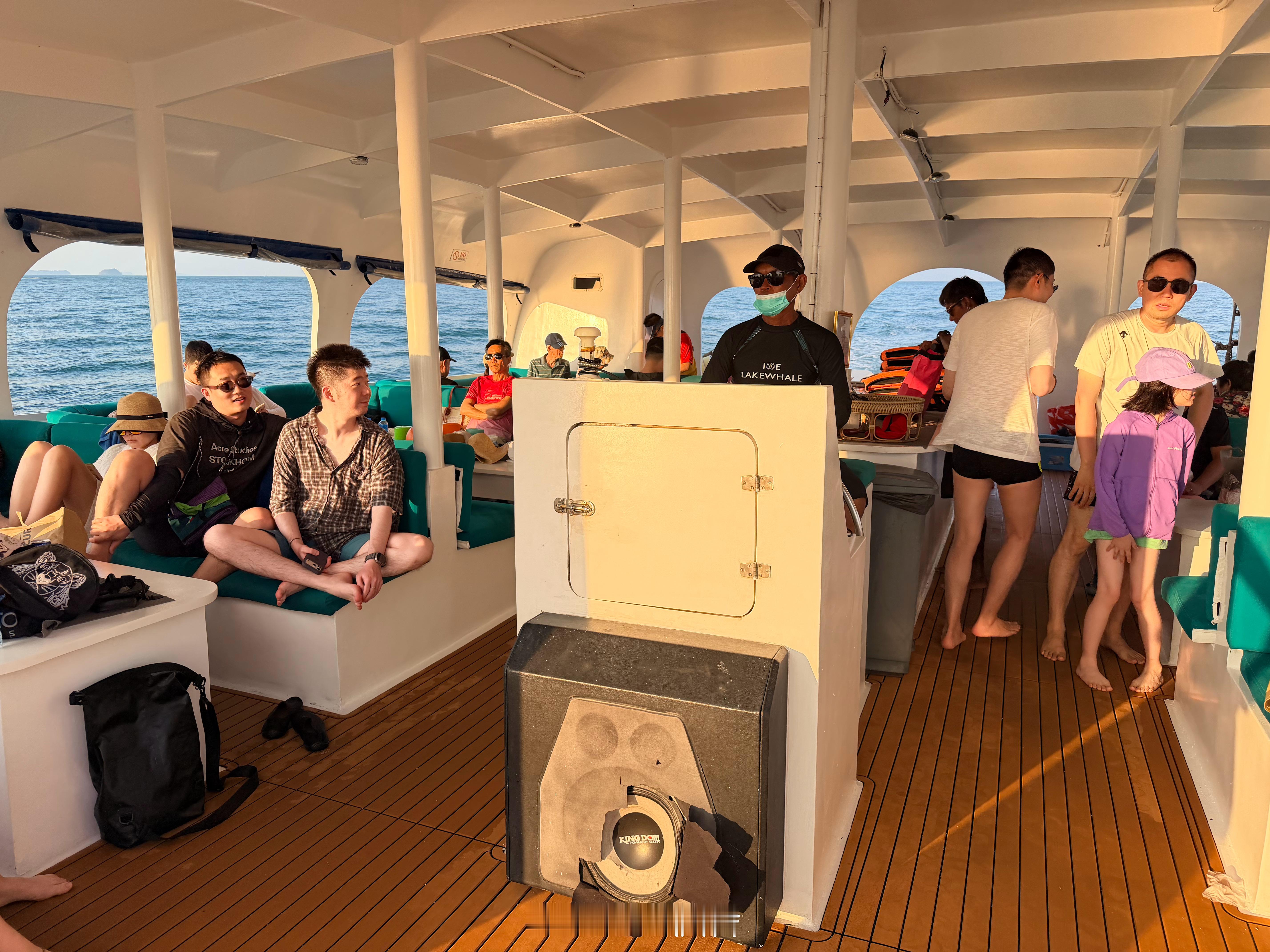 媳妇今天安排了个出海游,选的中文服务,全船都是咱们中国人。图3长得酷似吕颂贤的泰国导游,说着一口流利的中文。他告诉我现在泰国学校会教三种语言,分别是泰语,中文,英语。