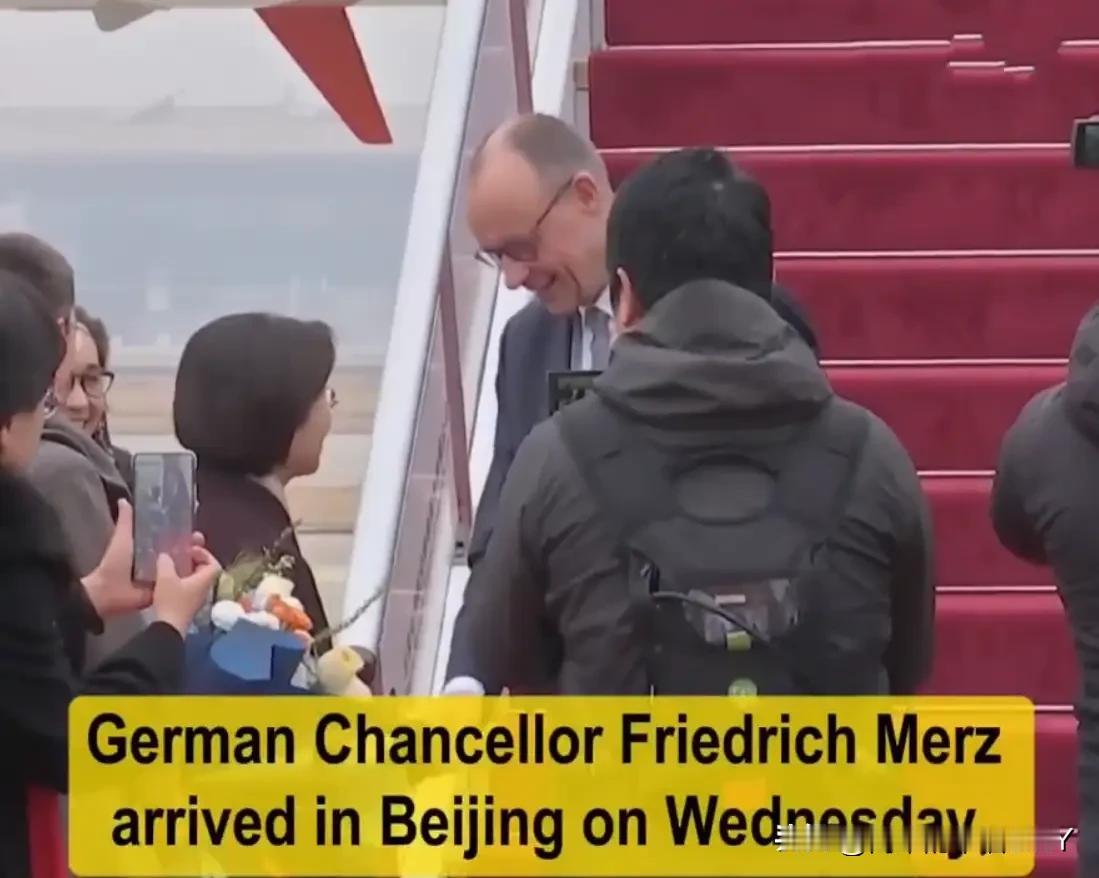2月25日德国总理抵达访华第一站受到隆重欢迎,走在机场的红毯上,一位穿着军装的兵哥哥紧跟其后,看起来好飒! 2月25日,德国总理默茨的专机降落在北京机场。踏上中国土地的那一刻,迎接他的是铺展的红毯,是热情的笑脸。这场隆重的欢迎仪式,透着东道主的诚意,也拉开了他两天访华行程的序幕。 默茨的行程像上了发条的钟,紧凑得很。在北京只待一天,除了重头戏正式会谈,还要走进故宫感受历史沉淀,探访在华德企了解合作脉动。转天就得赶赴杭州,马不停蹄的节奏里,藏着此行的分量。 有人注意到,这位首次正式访华的德国总理,脸上带着几分拘谨。或许是第一次踏上这片土地,或许是肩上的任务不轻。 毕竟,中德经贸纽带紧密,从汽车到化工,从科技到环保,太多领域需要面对面沟通。他带着使命而来,每一场会面、每一次交流,都关乎两国未来的合作走向。 接机现场透着几分轻松,工作人员的微笑,翻译的从容,都在传递一个信号:这里是对话的平台,不是博弈的战场。默茨走在红毯上,偶尔抬手致意,虽有紧张,却也难掩期待。 老话说“百闻不如一见”,故宫的红墙黄瓦里,藏着中国五千年的文明密码;在华德企的车间里,跳动着合作共赢的脉搏。这些安排,不只是让客人看风景,更是想让他触摸一个真实的中国。 既有历史的厚度,也有发展的热度。杭州的行程同样值得期待,这座互联网之城,既有“上有天堂”的诗意,也有数字经济的活力。中德在新能源、人工智能等领域的合作,或许能在这里找到新的火花。 短短两天,从北京到杭州,从历史到未来,默茨看到的,会是一个立体多元的中国。其实,国与国之间的交往,就像人与人相处。初次见面的紧张难免,但真诚最能破冰。 默茨带着德国的期待而来,中国也敞开大门,想让他看到合作的潜力。毕竟,在全球化的今天,谁也离不开谁。汽车要卖向全球市场,技术要在交流中进步,老百姓的日子要在合作中更红火。 有人说,这次访华是“及时雨”。全球经济面临挑战,中德作为重要经济体,携手比拆台更有意义。少些猜忌,多些信任;少些对抗,多些协作——这或许是默茨此行最该带走的感悟。 红毯不长,却连接着两个国家的当下与未来。那位紧随其后的卫士,守护的不只是客人的安全,更是这份来之不易的交流机会。愿默茨的访华之旅,能像北京的春天一样,播下合作的种子,收获共赢的果实。 行程紧凑也好,首次到访也罢,只要带着诚意来,就不怕谈不出成果。毕竟,好的合作,从来都在脚踏实地的沟通里。