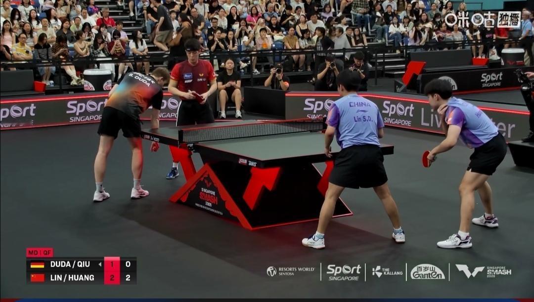 热烈祝贺林诗栋/黄友政晋级半决赛! 林诗栋/黄友政3:2(11-6;6-11;11-9;7-11;11-9)决胜局、两分险胜德国邱党/杜达! 2月27日 14:20 男双半决赛 林诗栋/黄友政Vs法国多尔/布尔拉萨德
