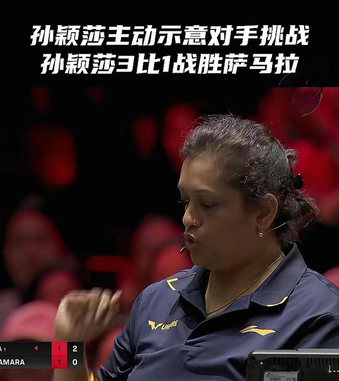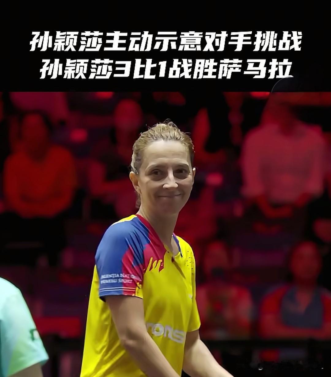 这样的孙颖莎连对手都喜欢。萨马拉鹰眼挑战成功了,回过头对莎莎微笑示意友好。 孙颖莎对战萨马拉大比分1比1,第三局比分1:0时,裁判直接判萨马拉的发球高度不够……比分2:0 裁判问萨马拉:你要挑战吗? 莎莎也提醒她:难道你不挑战吗? 最后对手挑战成功……比分返回原来比分…… 这就是孙颖莎的格局和胸怀,难怪喜欢莎莎的人越来越多! 祝莎莎越来越好!
