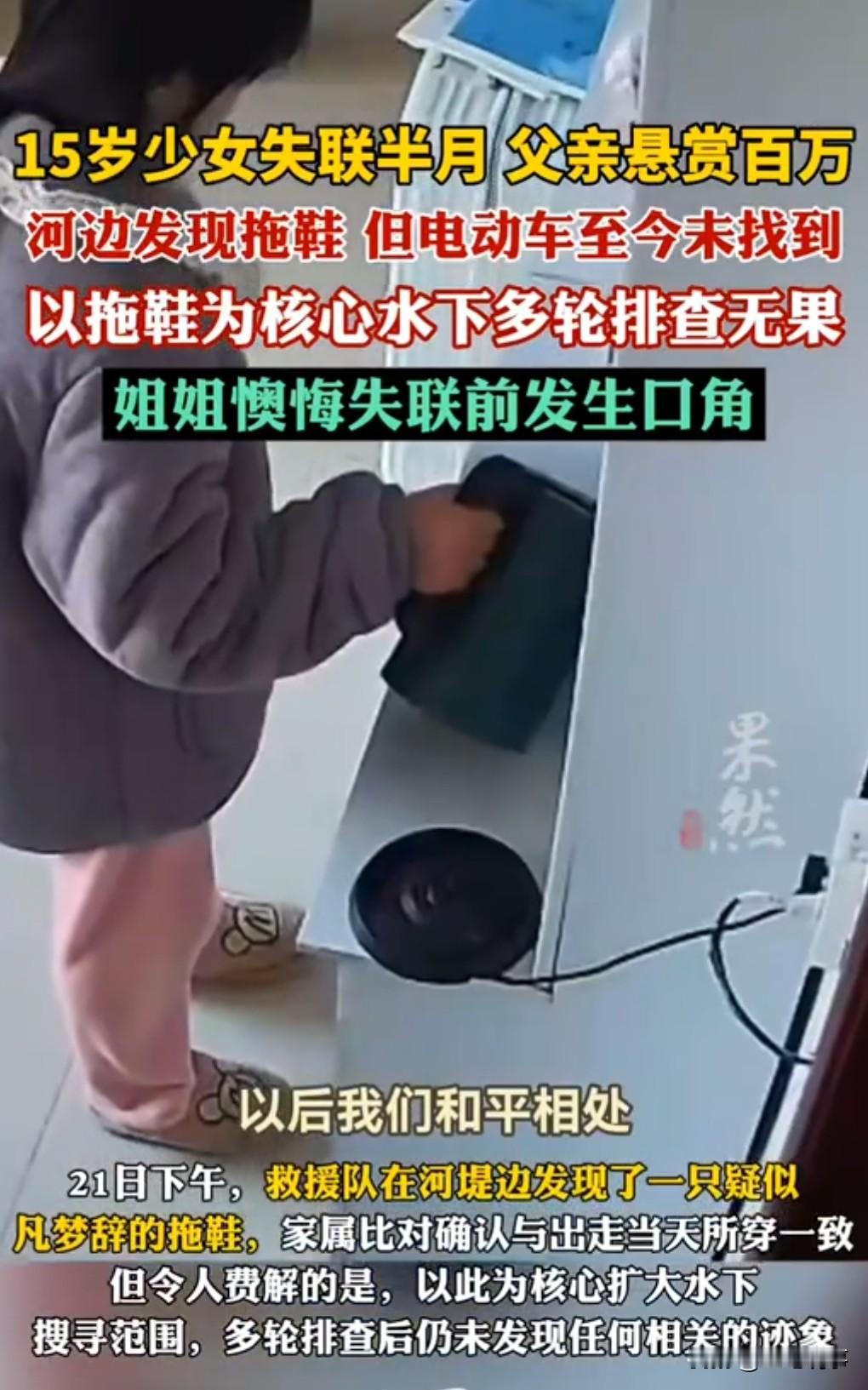 这真的是太令人担心了,未成年的心理状况值得关注。 2月25日热点,15岁少女失联半月,父亲悬赏百万。 开始的时候悬赏10万,如今悬赏加到了百万。 这是一个富裕的家庭,女孩不应该做出错误的选择。 和姐姐吵架了,结果生气了,姐姐也十分的后悔。 有个不好的情况是在河边发现了女孩的拖鞋。 实不相瞒,多年前,我有一个亲戚,弟弟和姐姐发生口角,弟弟喝农药而死。15岁少女失联半月 父亲悬赏百万