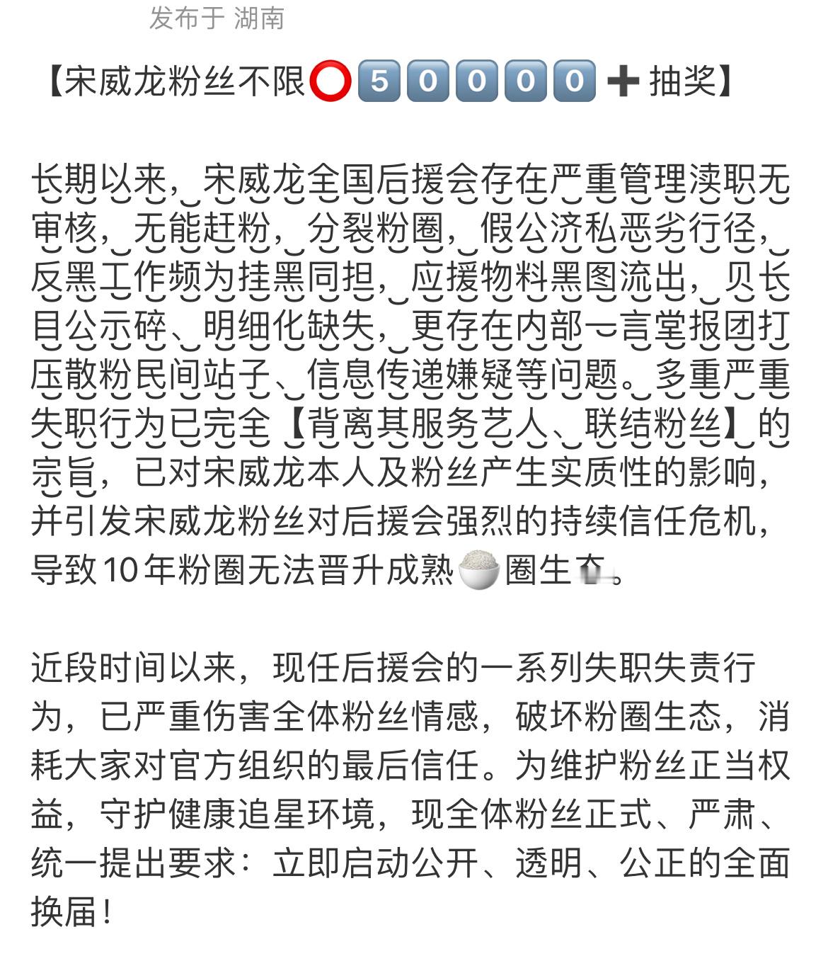 帮发:宋威龙后援会不干正事,粉丝起义抽🎁奖要求解散重组!宋威龙后援会解散重组