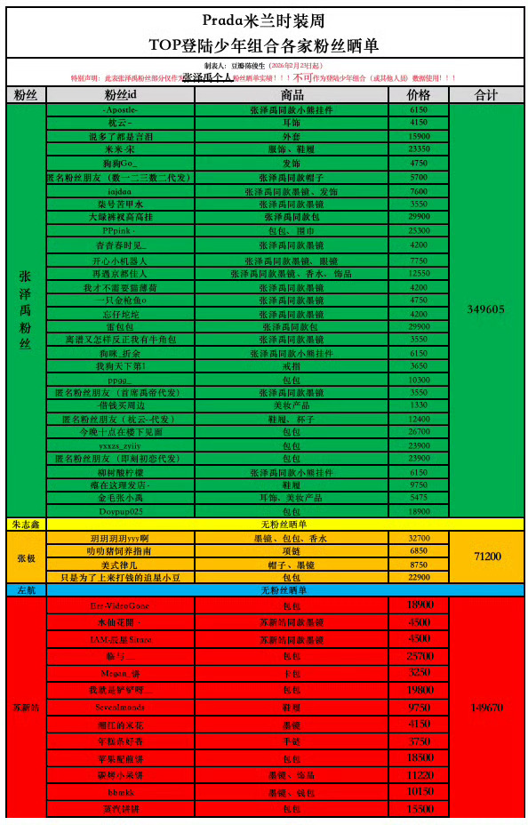 张泽禹家2026米兰女装秀时装周晒单情况,这氪金也太猛了