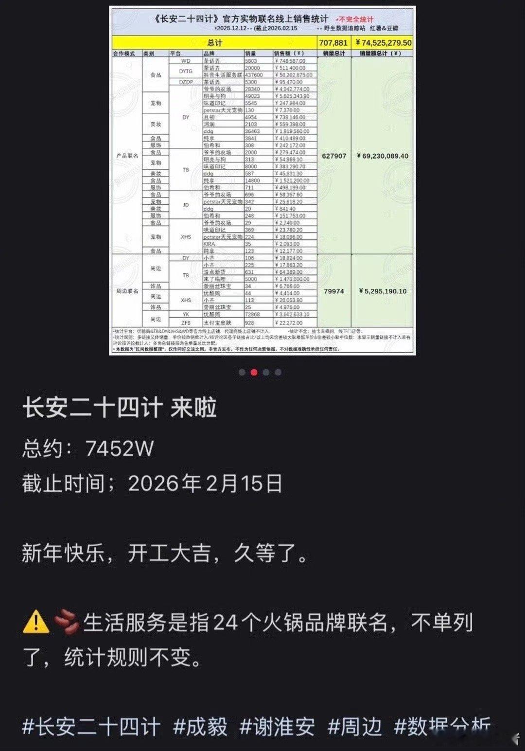 成毅长安二十四计仅可显示的周边销售额高达7452万这还不包括创优酷平台纪录的站内抽卡销量史冠,28集创优酷集均广告史冠、2025年招商年冠、云包场史冠、周边联名史冠,成毅顶级财神爷商业价值市场号召力一骑绝尘成毅长安二十四计播放量领跑