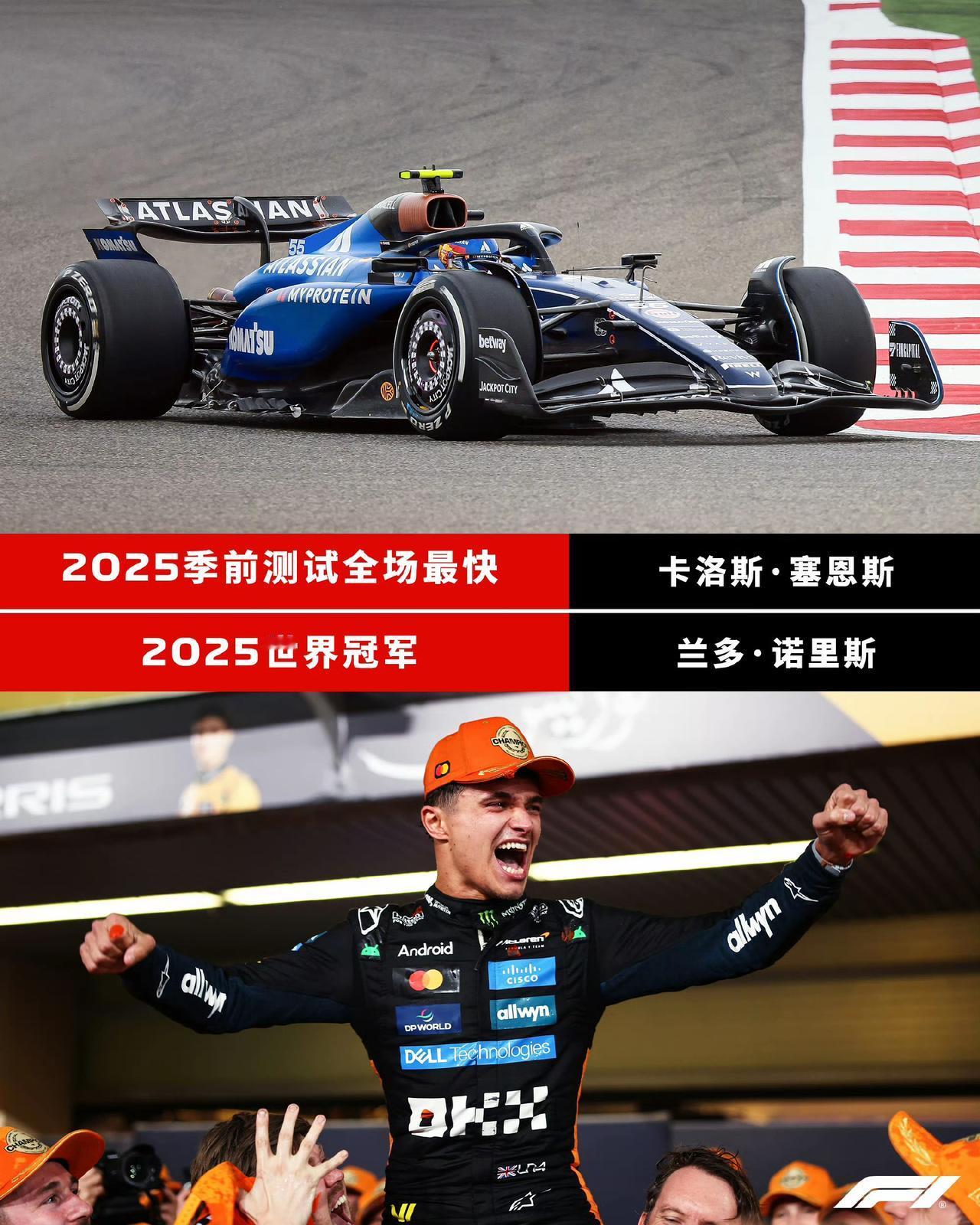 维斯塔潘夺冠的那几年,季前测试最快的只有2021年是他,其它年份都不是他。 上赛季季前测试最快的是塞恩斯,但冠军却是诺里斯。 今年季前测试最快的是乐扣,冠军会是谁呢?大概率不是乐扣……