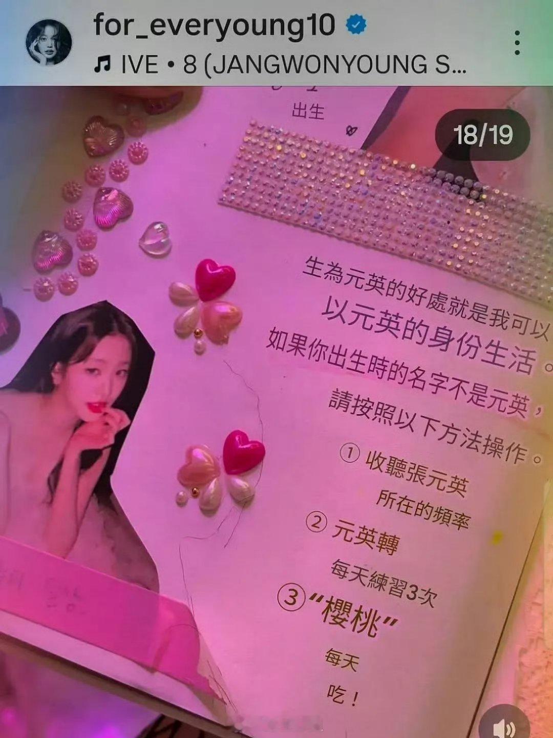 张元英在自己的ins上发布了“我是张元英:成为张元英的50种方法”,其中一个方法就是每天吃樱桃,你想成为她不?