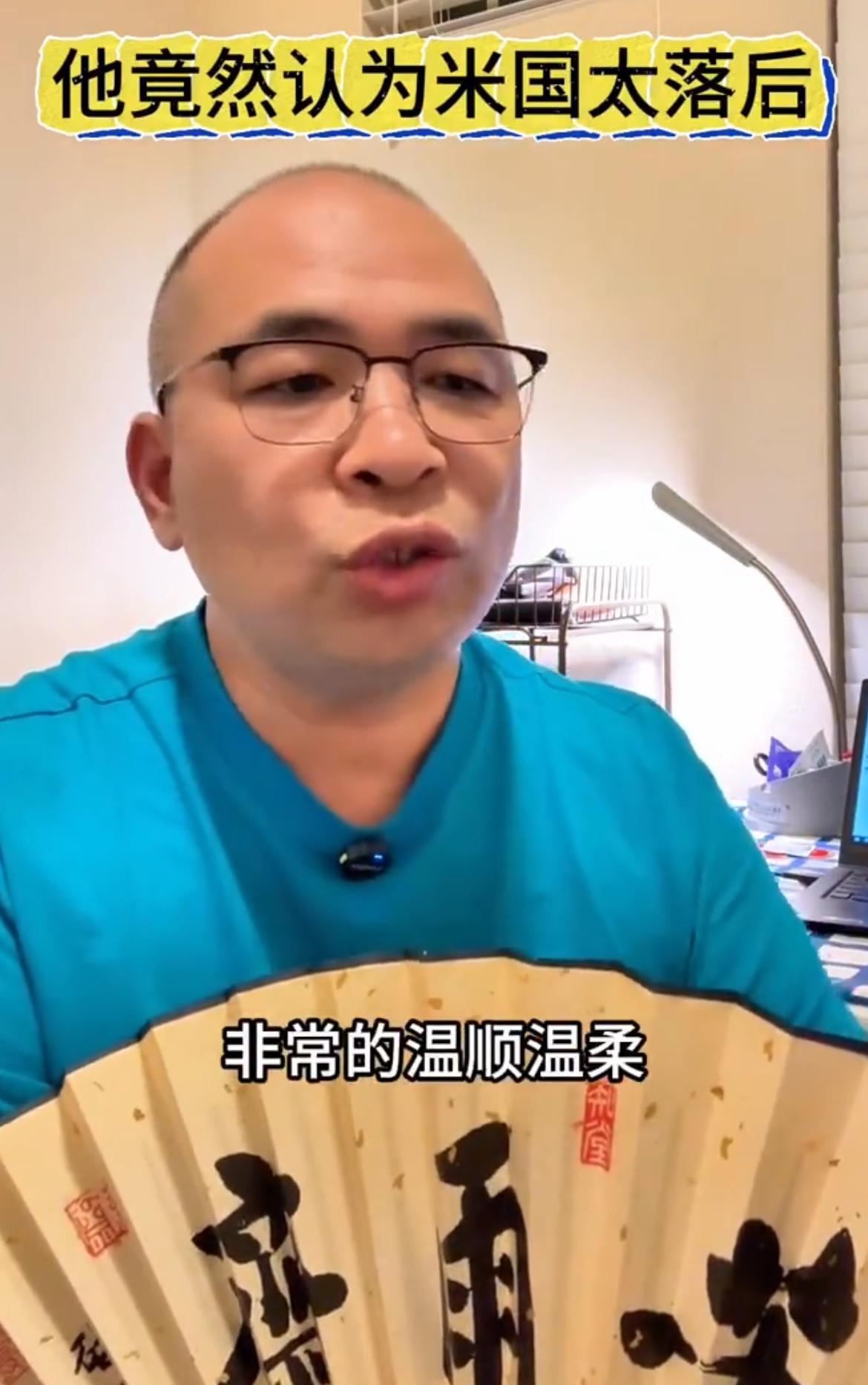 儿子从中国到美国去看爸爸,在美国呆了十几天吐槽美国太破旧太落后了 这位爸爸话锋一转,说儿子虽然吐槽美国机场、地铁站破破烂烂的,但是他说,美国人特别好,特别温顺有礼貌。自然风景环境也特别好蓝天白云的,非常讲诚信 反正说了一堆就是想要证明美国虽然基建不好,但是其他方面都非常好