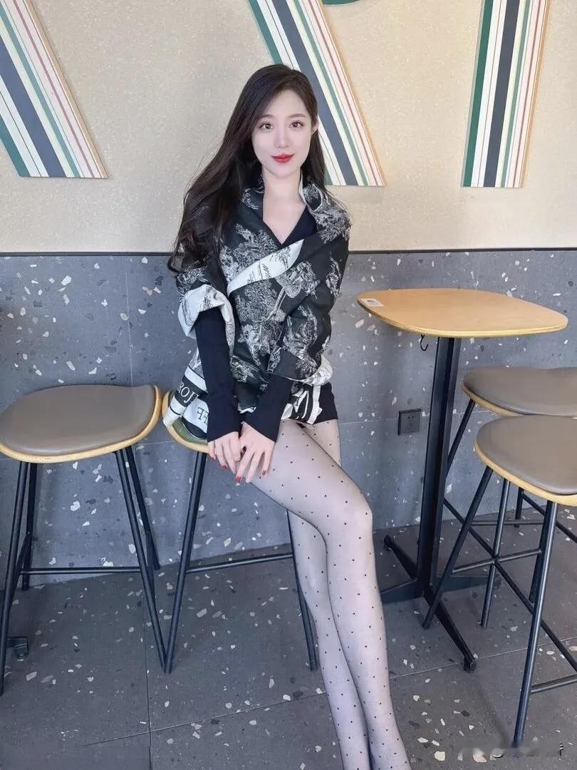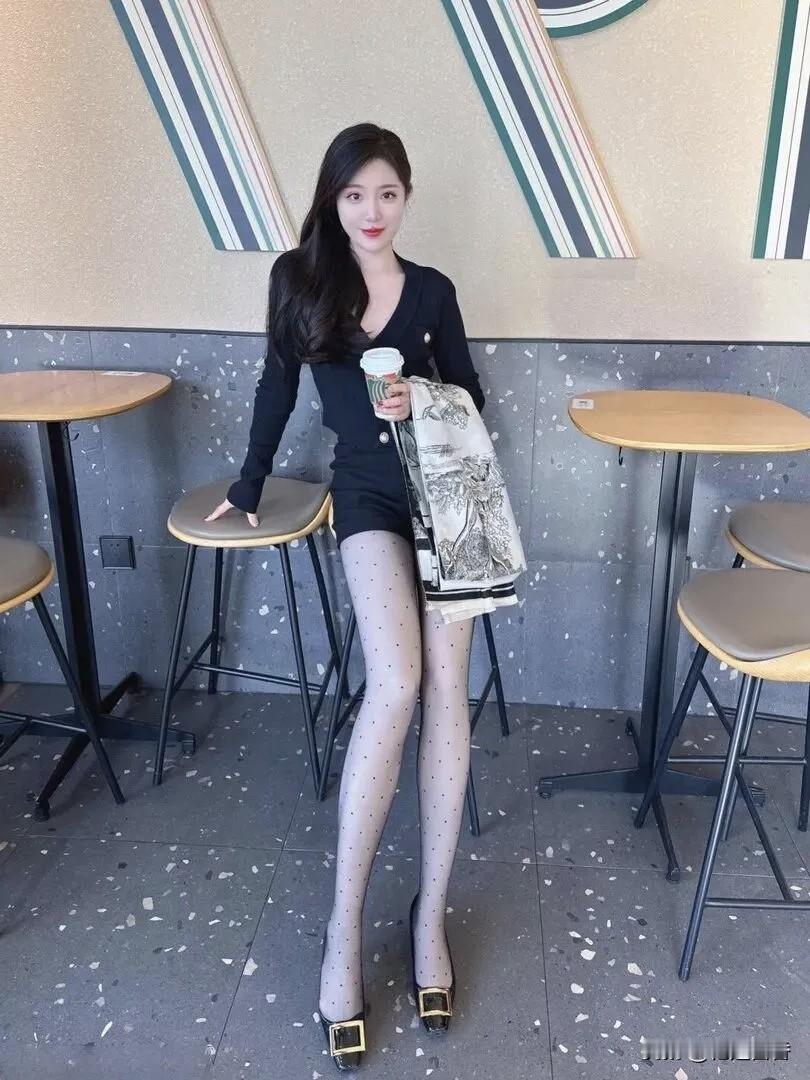 优雅咖啡馆穿搭,黑白点袜搭配时尚,尽显都市女性魅力!黑色服饰怎么穿才高级? 黑色