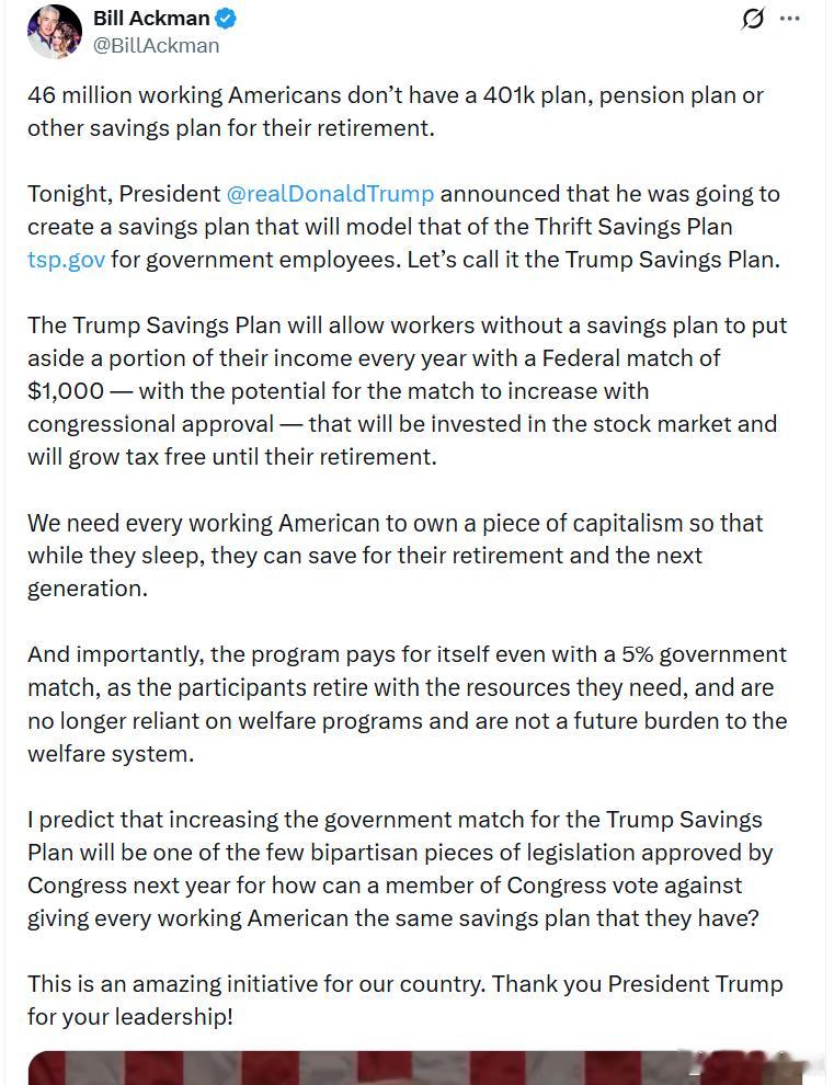 今晚,特朗普总统宣布,他将创建一个储蓄计划,其模式将参考政府雇员的节俭储蓄计划。我们暂且称它为“特朗普储蓄计划”。