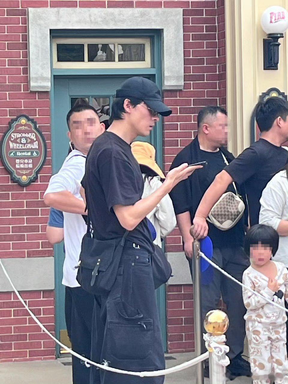 吴倩张雨剑带女儿逛迪士尼吴倩张雨剑带女儿逛迪士尼,张雨剑推着婴儿车,吴倩一身红