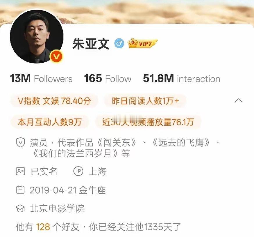 所以说娱乐圈没有长久不变的友谊。朱亚文是壹心娱乐成立后签约的第一批艺人,曾经还在节目上说,“公司在他在”去年大生意人播出的时候,朱亚文的微博简介一栏处,还写着壹心娱乐。过完年一看,竟然没了这个👇🏻经纪公司?!看来是悄悄的和平分手了。不知道朱亚文是终于发现壹心给他的规划并不好,决心自己单干再闯一番事业呢,还是要提早进入退休状态了?期待恢复自由身的朱亚文