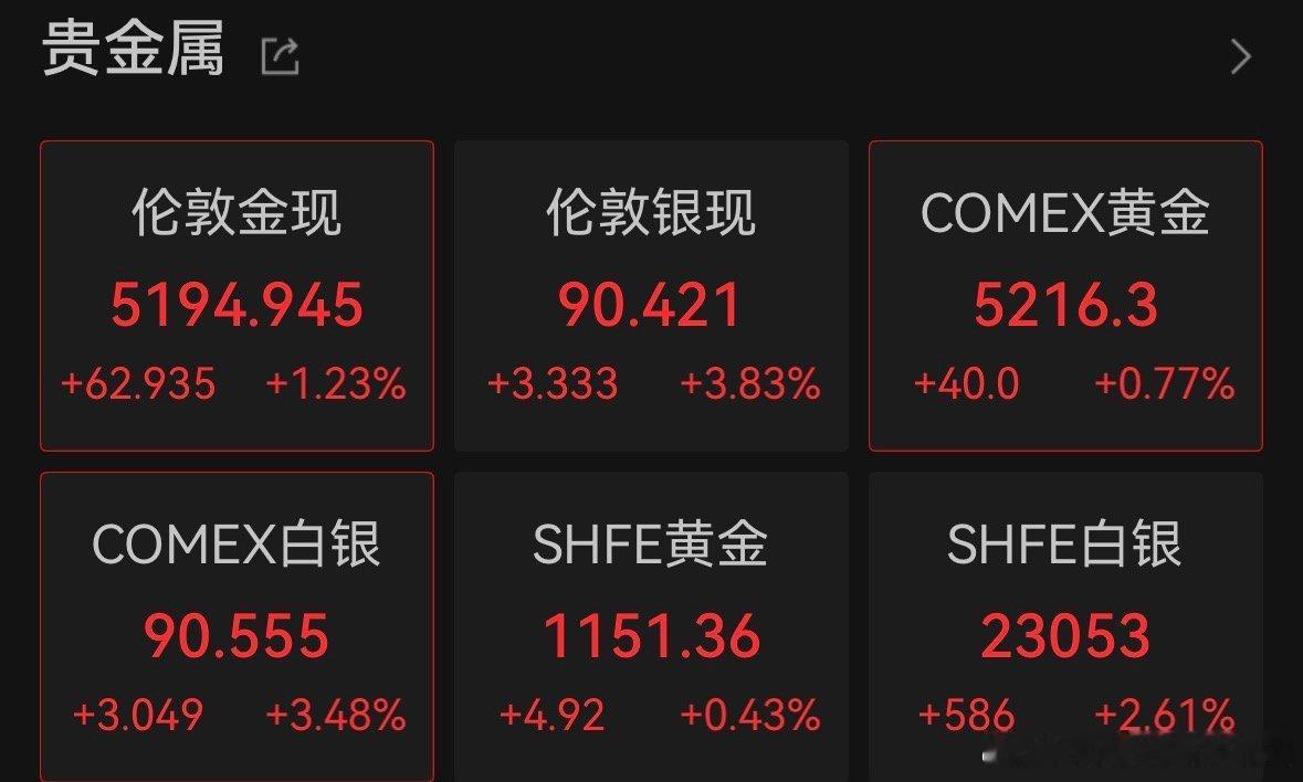 黄金与白银也集体拉升,截至发稿,现货黄金涨逾1%,每盎司价格升至5200美元上方,现货白银更是大涨超4%,美国银行称,白银今年可能再度涨至每盎司100美元以上。白银今年或再破100美元 (e公司)