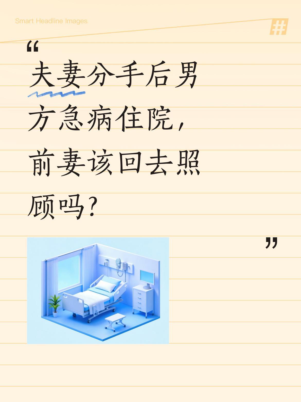 夫妻分手后男方急病住院,前妻该回去照顾吗? 河北邯郸一对夫妻因琐事和平分手后,女方刚回娘家不久,男方就突发急病住院,身边无人照料,孩子还在上小学无人接送。男方姑姑无奈联系女方,她听完当场辞工,收拾行李连夜赶回。一路攥着手机,眼泪没停。 这样的选择让不少人感慨,分开了还是放不下孩子和曾经的感情。如果是你,会怎么做?