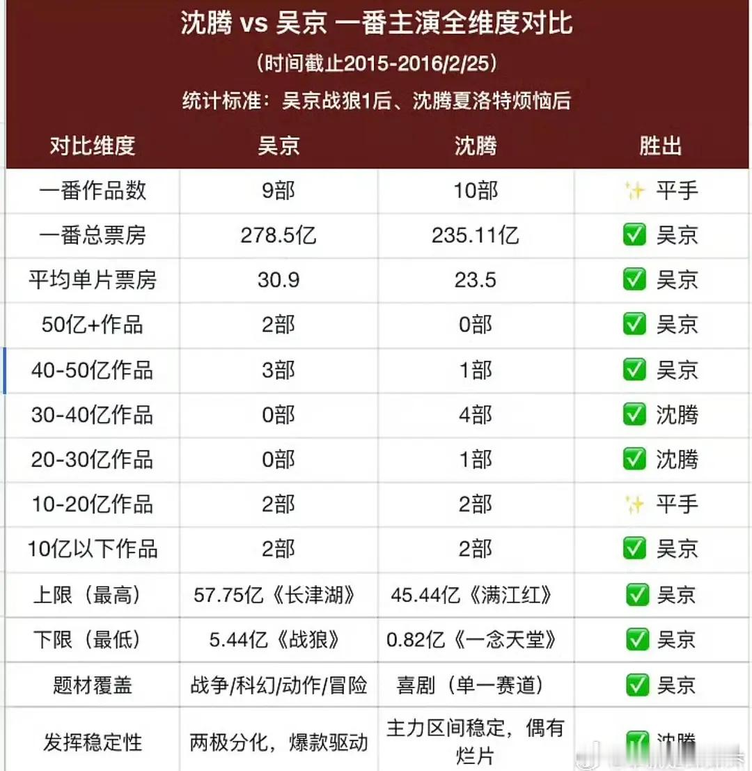 沈腾vs吴京一番主演全维度对比你觉得谁赢了