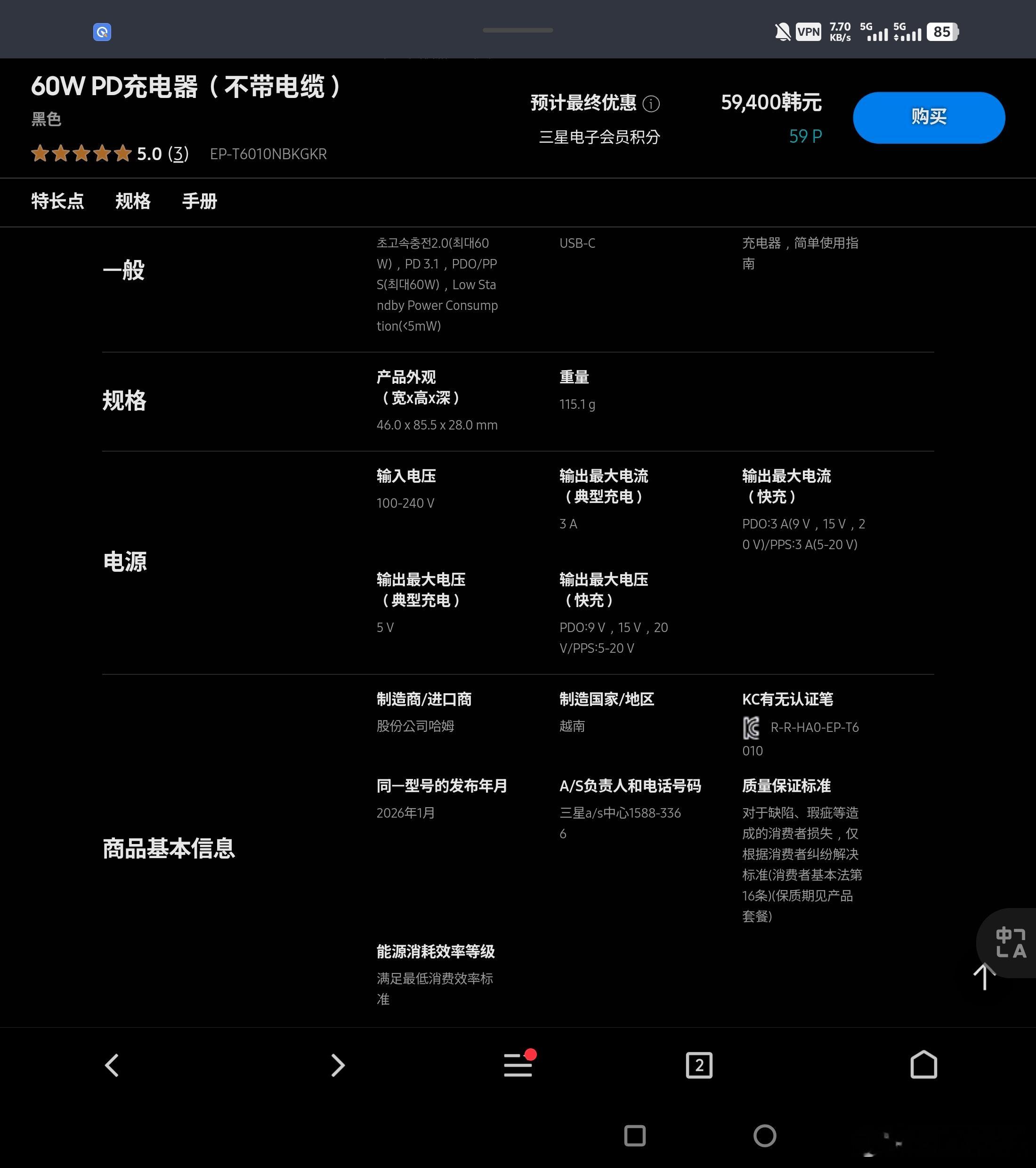 穿插一下最新的60W充电头T6010【不含线】目前韩国官网更新出来