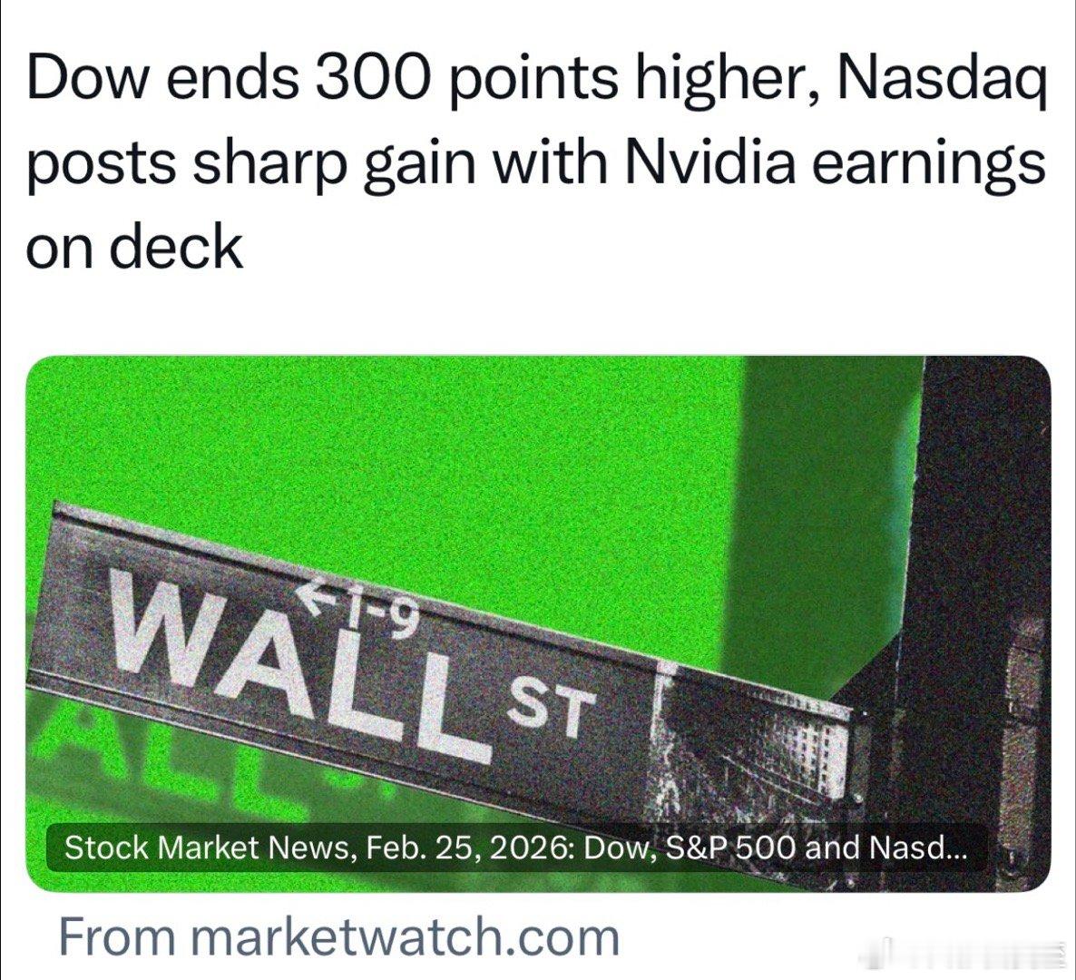 对Nvidia财报的预期,带动纳斯达克📈1.26%
