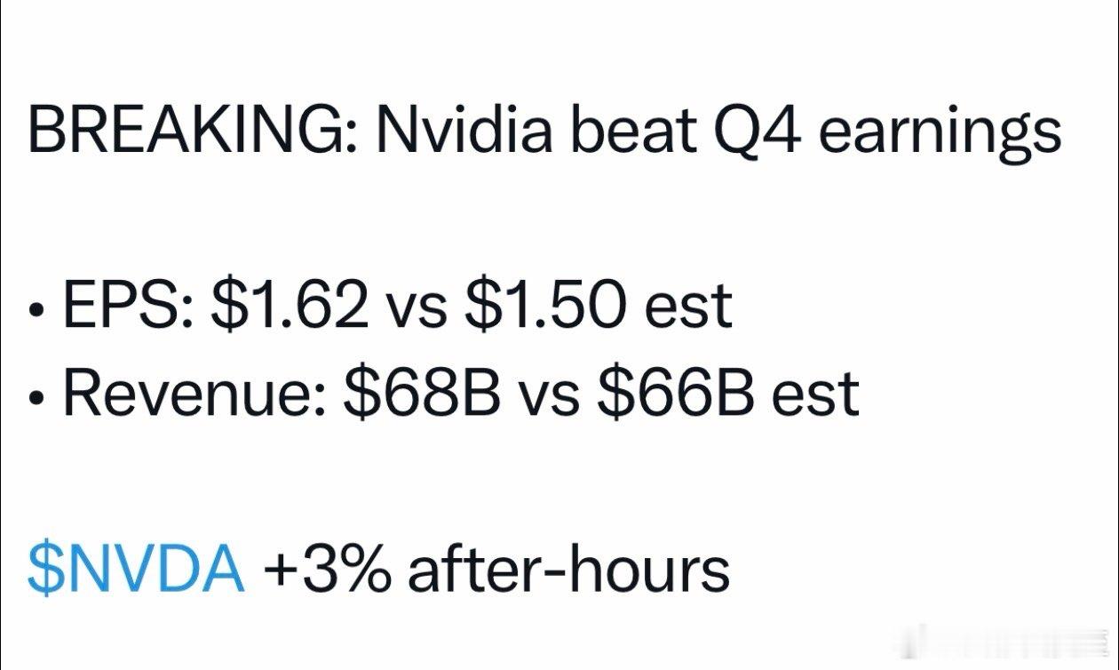 对Nvidia财报的预期,带动纳斯达克📈1.26%Q4实际结果,确实超出预期,