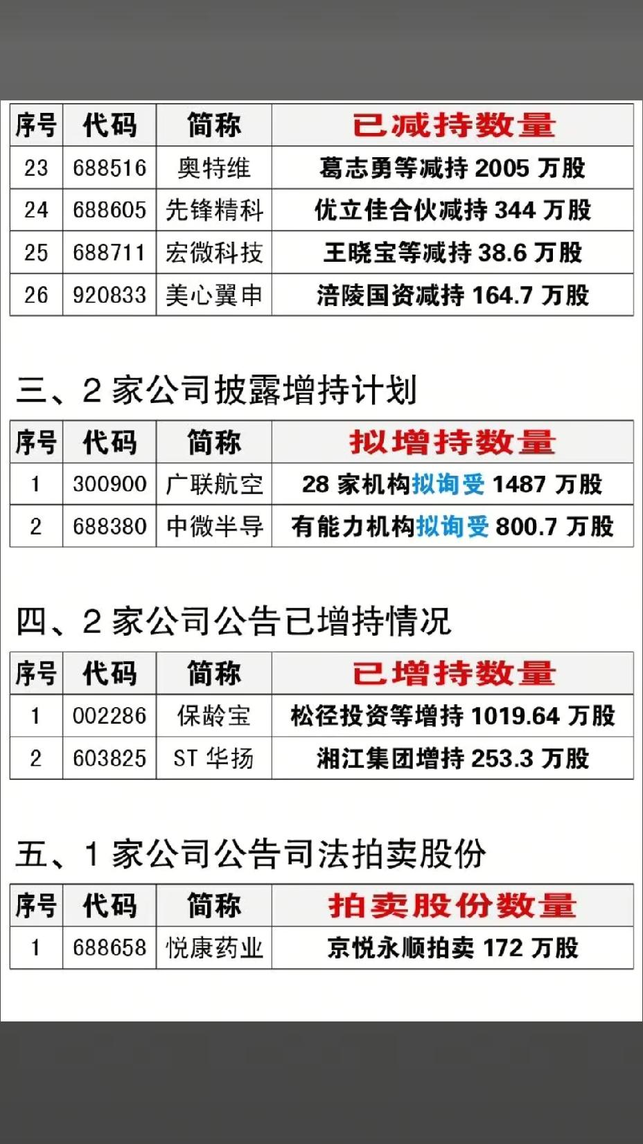 2月26日,周四A股减持、增持、回购公告速递!!! 30家股东披露减持计划,珠海明骏拟减持1.117亿股;奥欣投资拟减持拓日新能4225万股;26家股东公告已减持情况;2家公司披露增持计划;2家公司公告已增持情况;7家公司披露回购计划!!!