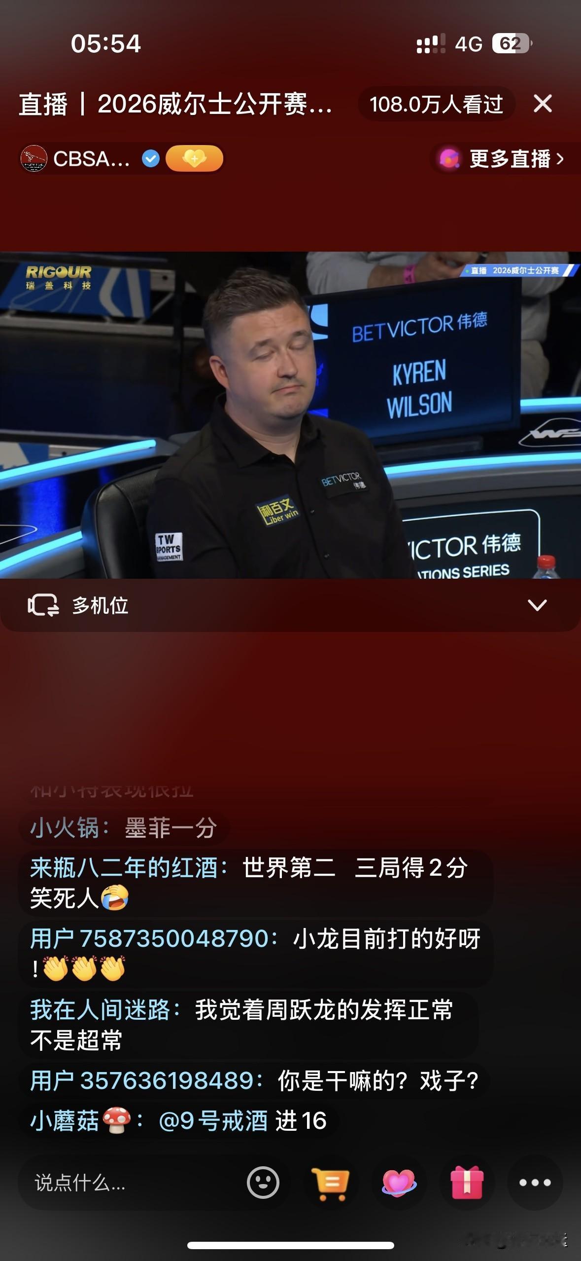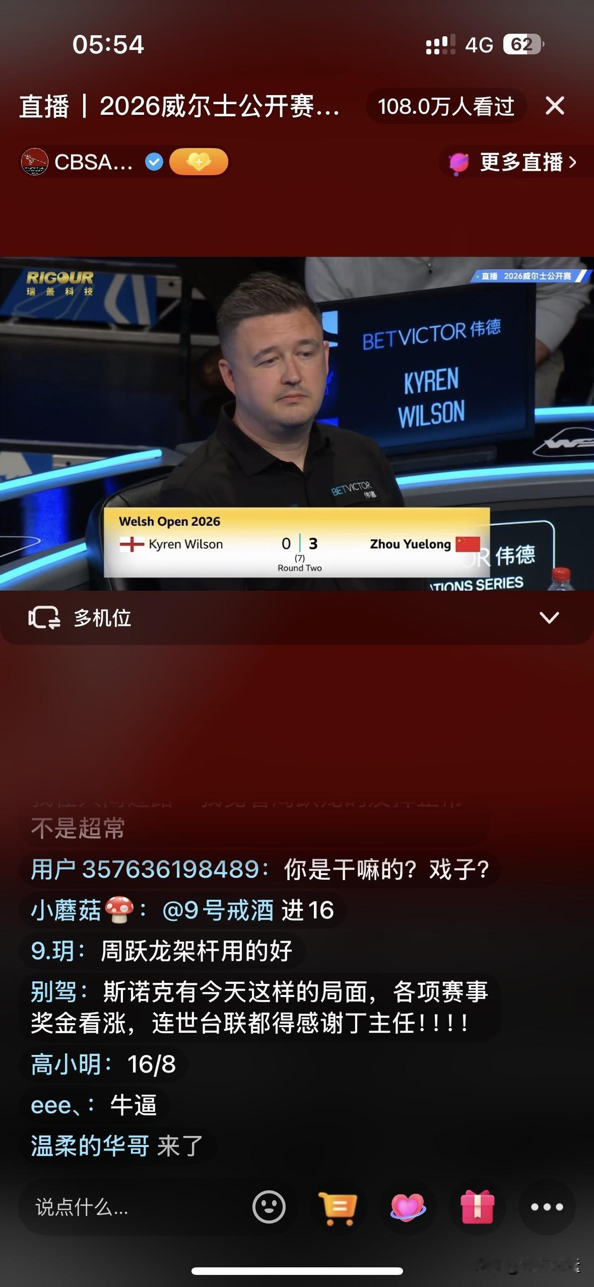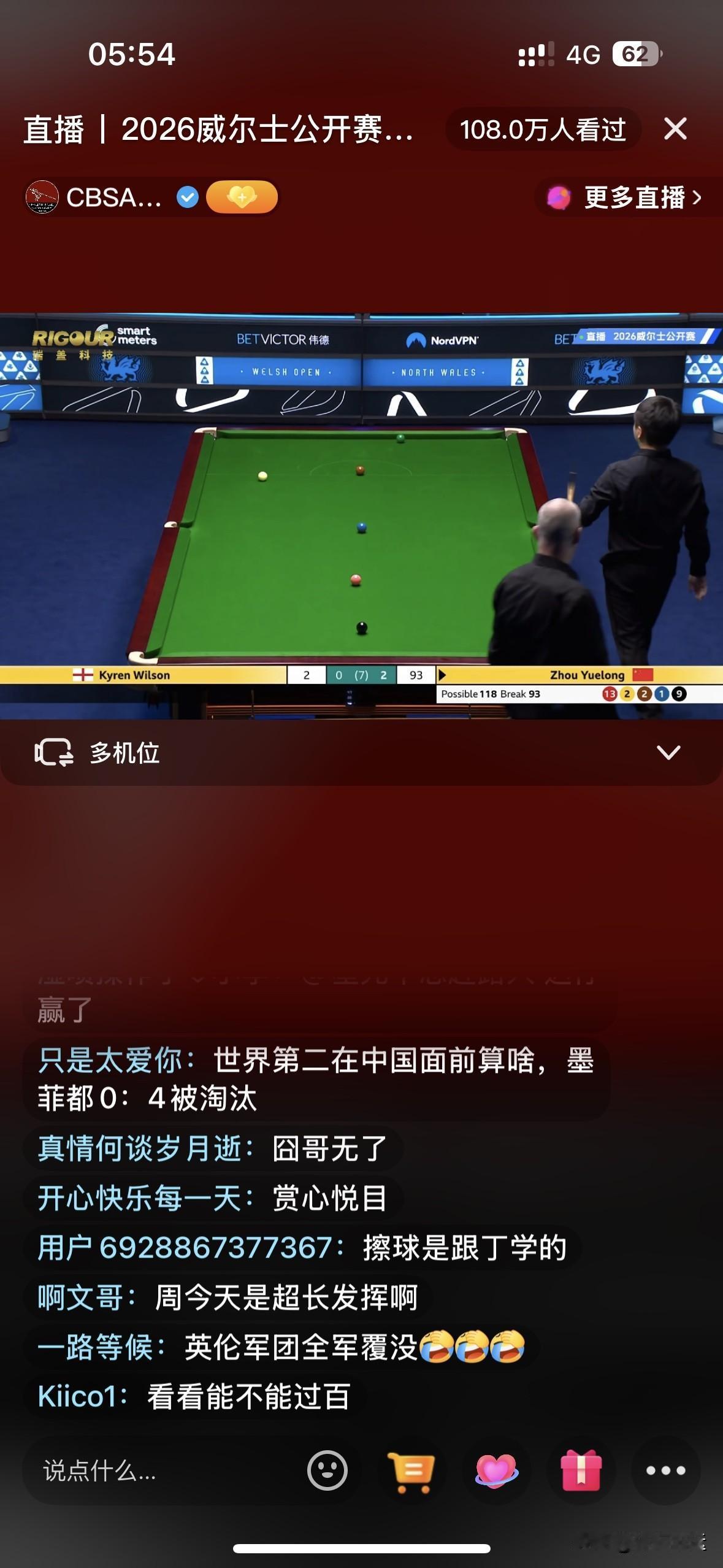 斯诺克威尔士公开赛次轮,周跃龙3 - 0领先凯伦·威尔逊率先拿到赛点,这可太让人期待爆冷了!周跃龙这状态上来了,简直是“挥拳哥”附体啊。不过,他和凯伦·威尔逊过往十次交锋只赢三场,虽说去年世界公开赛有过险胜,但比赛还没结束,一切都充满变数。之前也有过3 - 0决胜局周跃龙惨遭翻盘的情况,心态直接崩了。希望这次他能稳住,一鼓作气拿下比赛,给大家带来惊喜,咱就拭目以待后续的战况啦! 斯诺克爆冷日 斯诺克大冷门 斯诺克签表 斯诺克逆转