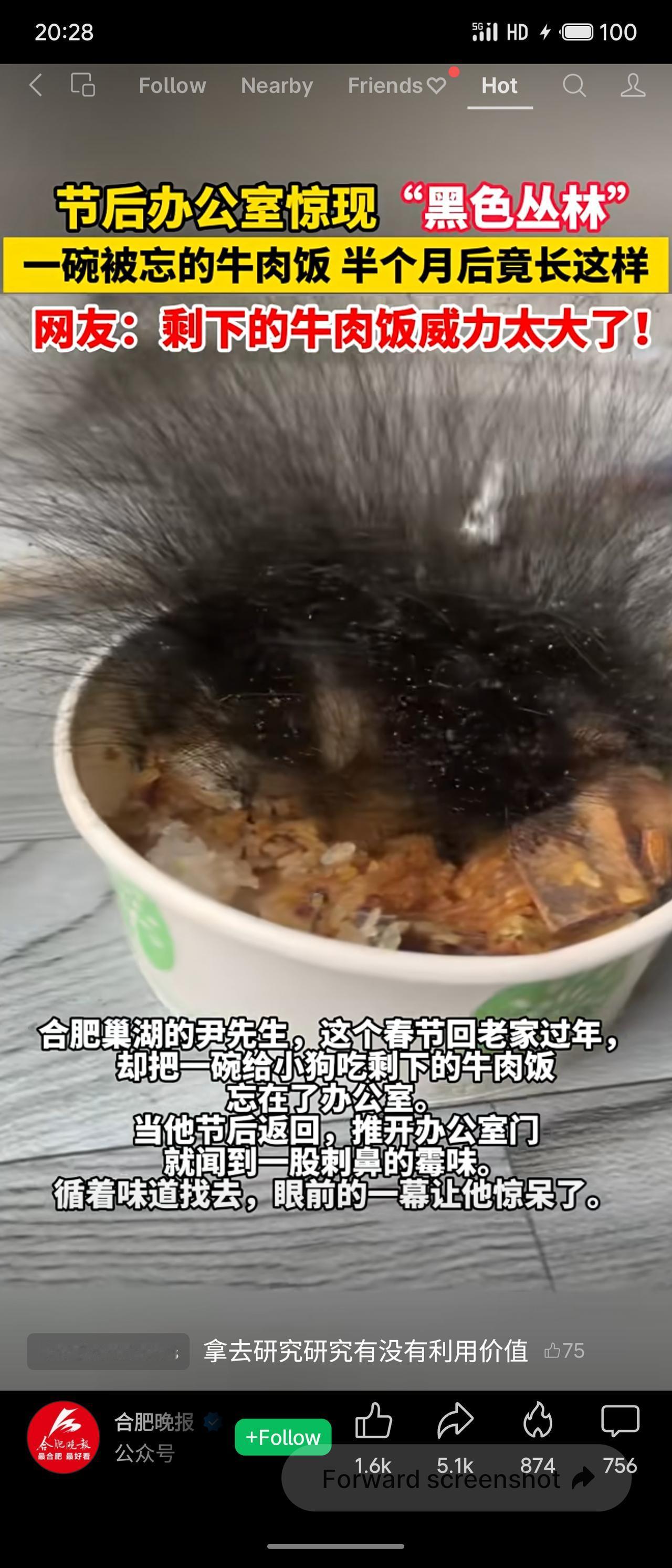 新年生活图鉴节后,合肥的买先生返回办公室,发现春节前给狗吃剩的牛肉饭忘了扔。半个月过去,碗里竟长满15厘米高的黑色菌丝,宛如一片“黑色丛林”,散发着刺鼻霉味。