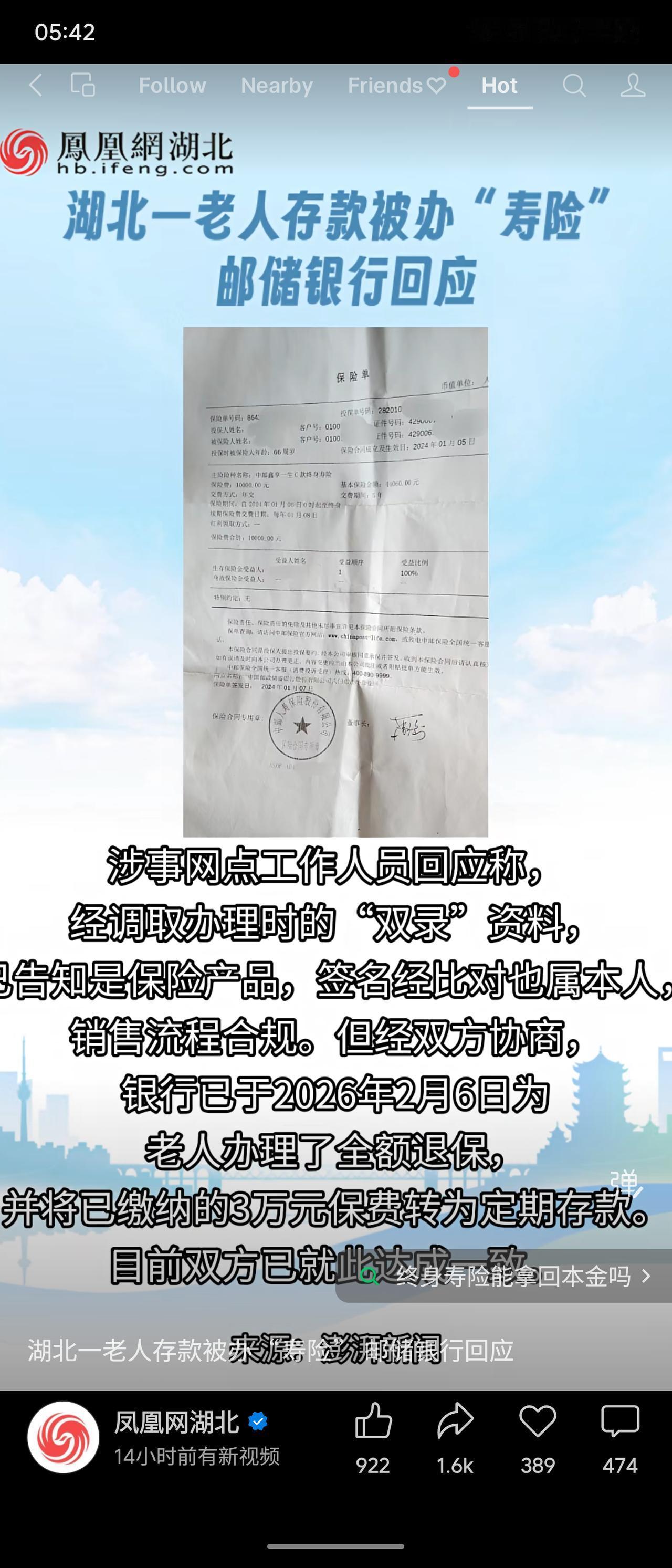 令人哭笑不得。湖北68岁陈奶奶去邮储银行存1万元,却被工作人员以“利息更高”为由诱导买成了五年期终身寿险。澎湃新闻介入后银行回应合法合规,但所谓存款变保险,本质是以高息为饵,让老人资金 locked 住流动性,一旦急用钱就面临退保损失。