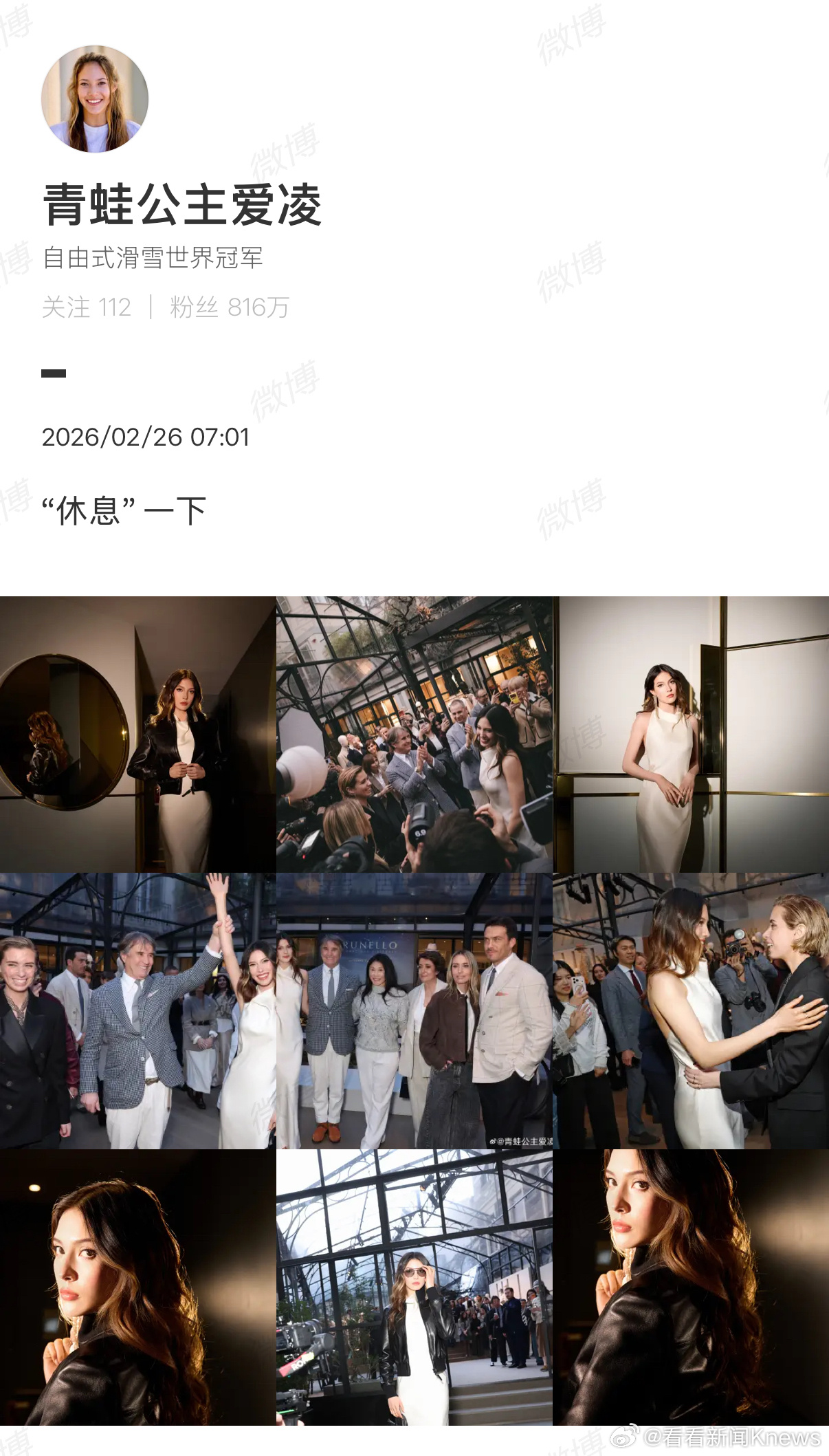 【#谷爱凌米兰时装周九宫格# 】2月26日,晒米兰时装周图组,配文:“休息”一下