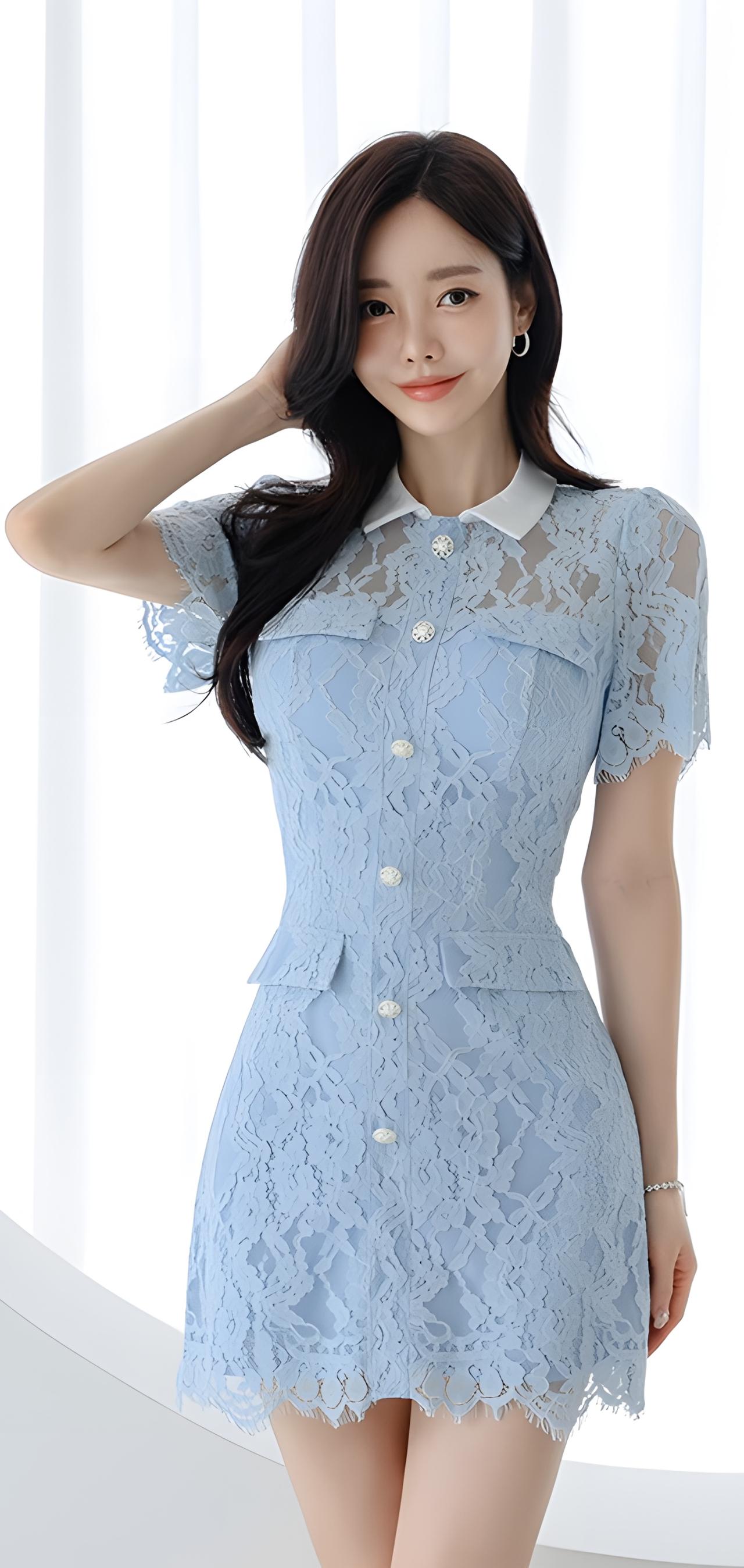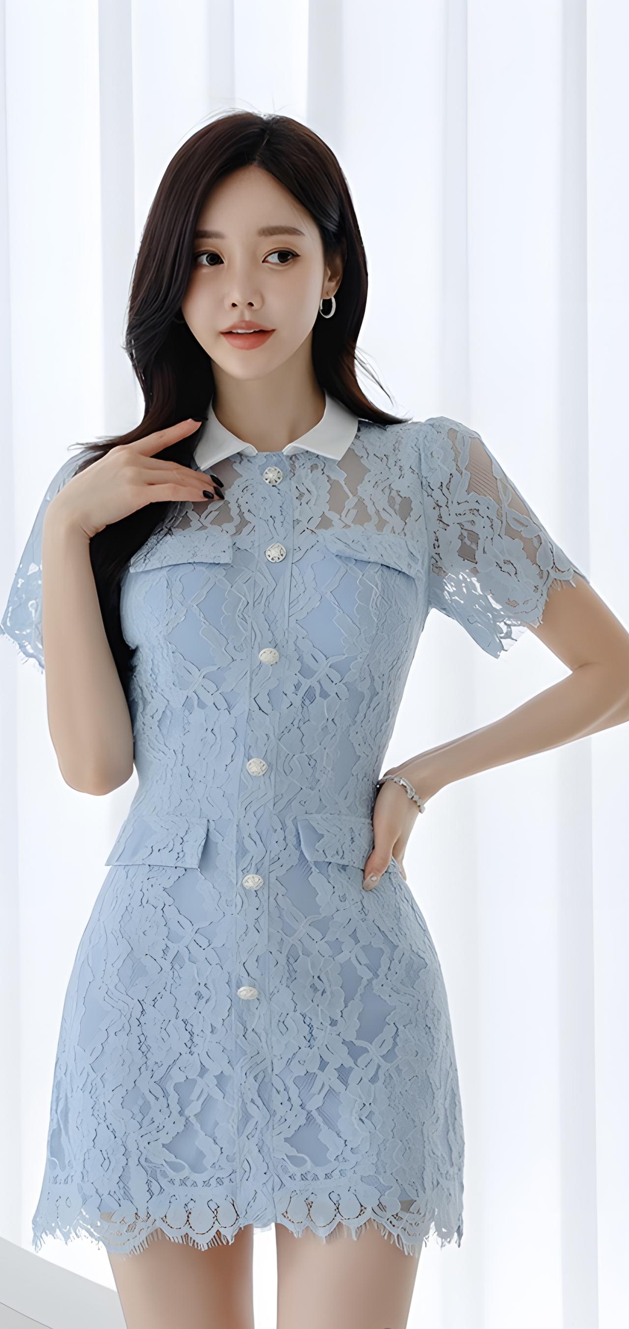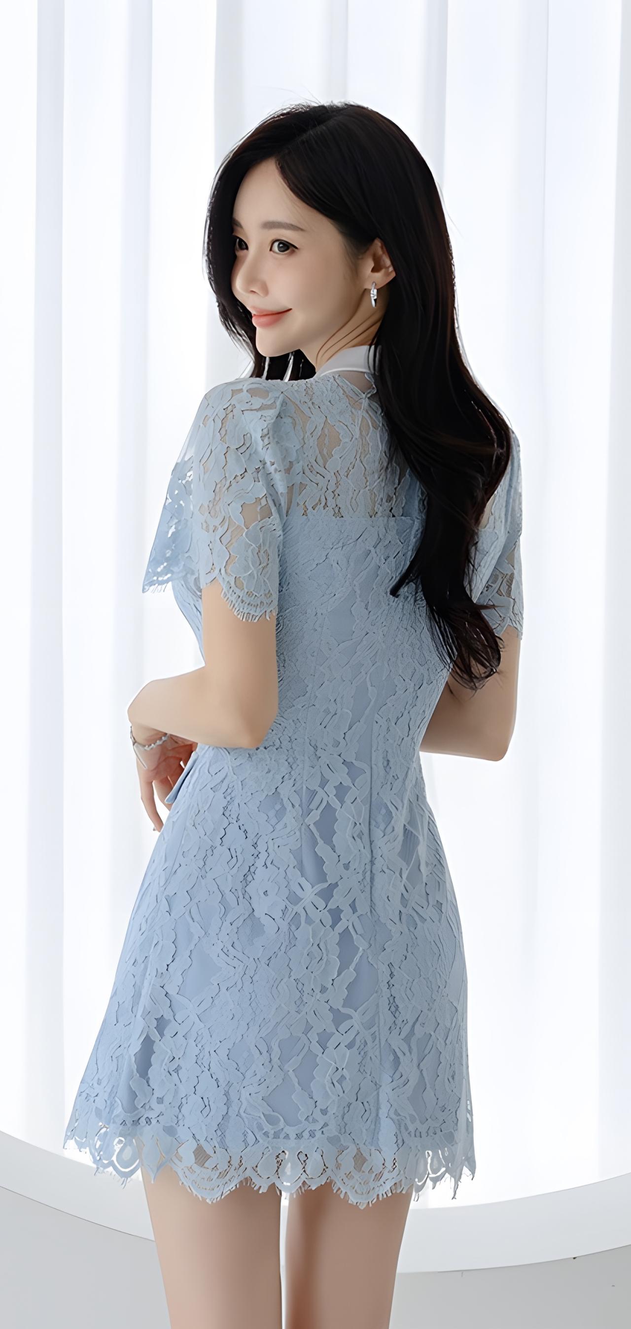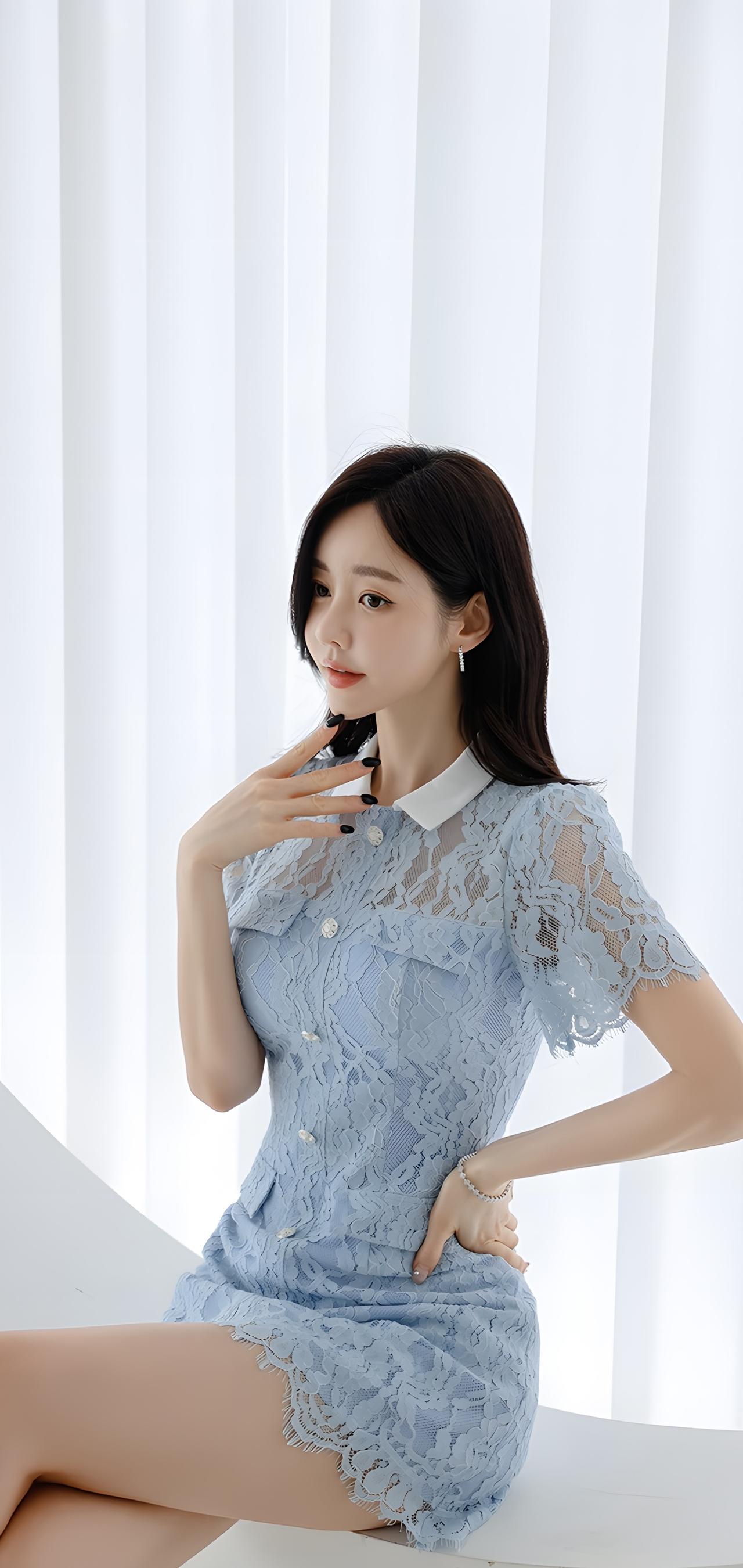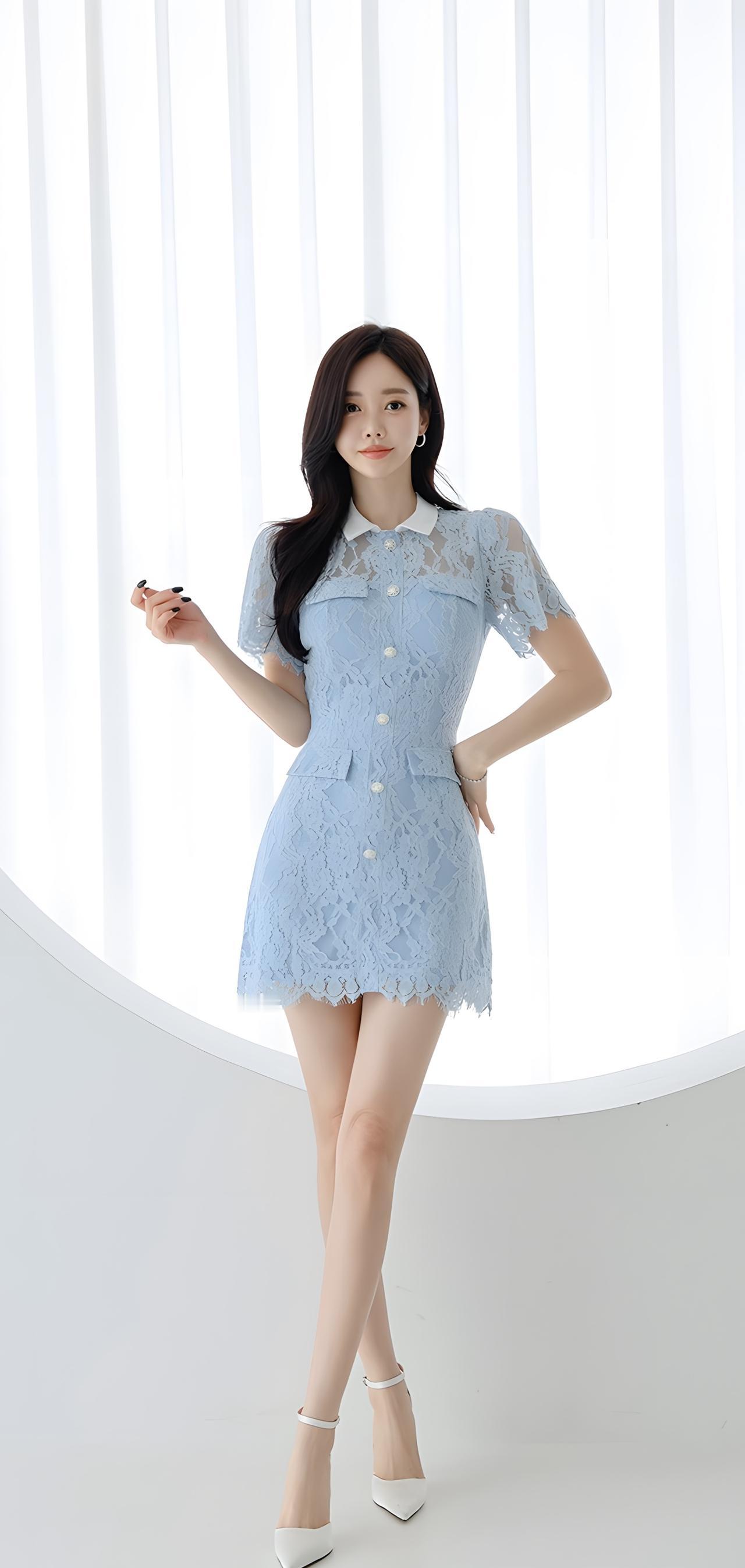 甜美蓝裙少女,优雅气质满满💗