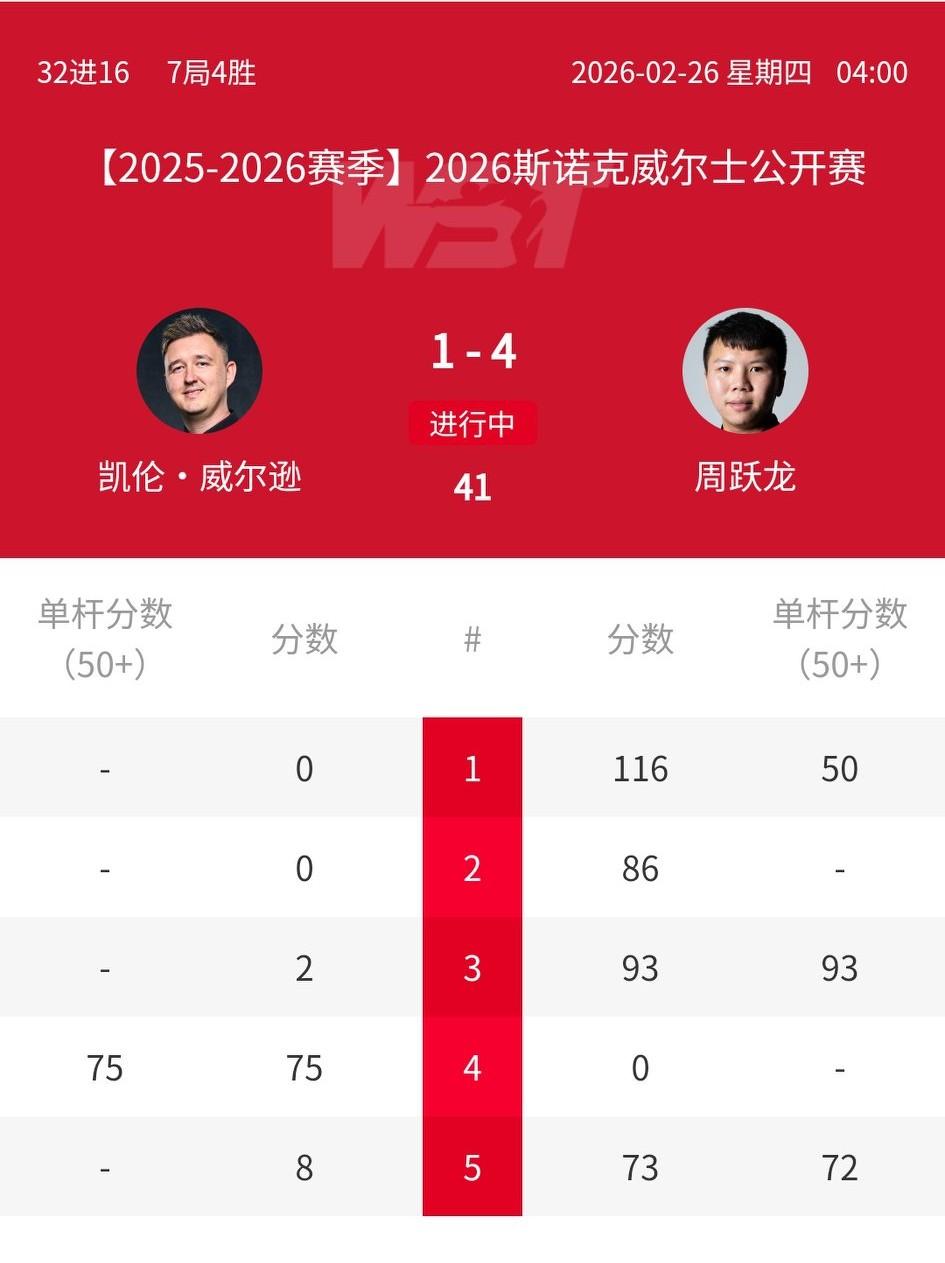 赵心童11连胜了,这是要背靠背三连冠吗?2026斯诺克威尔士公开赛16强出炉,赵心童领衔中国球员9进5,艾伦15万大奖的追兵又少了一个。 榜单上只剩下利索夫斯基(需打进决赛)、周跃龙(需夺冠)两人,艾伦的15万英镑大奖越来越稳了。 已晋级16强的5位中国球员: 江俊4-0袁思俊 吴宜泽4-2奥康纳 张安达4-2普伦 赵心童4-2斯坦穆迪 周跃龙4-1囧哥