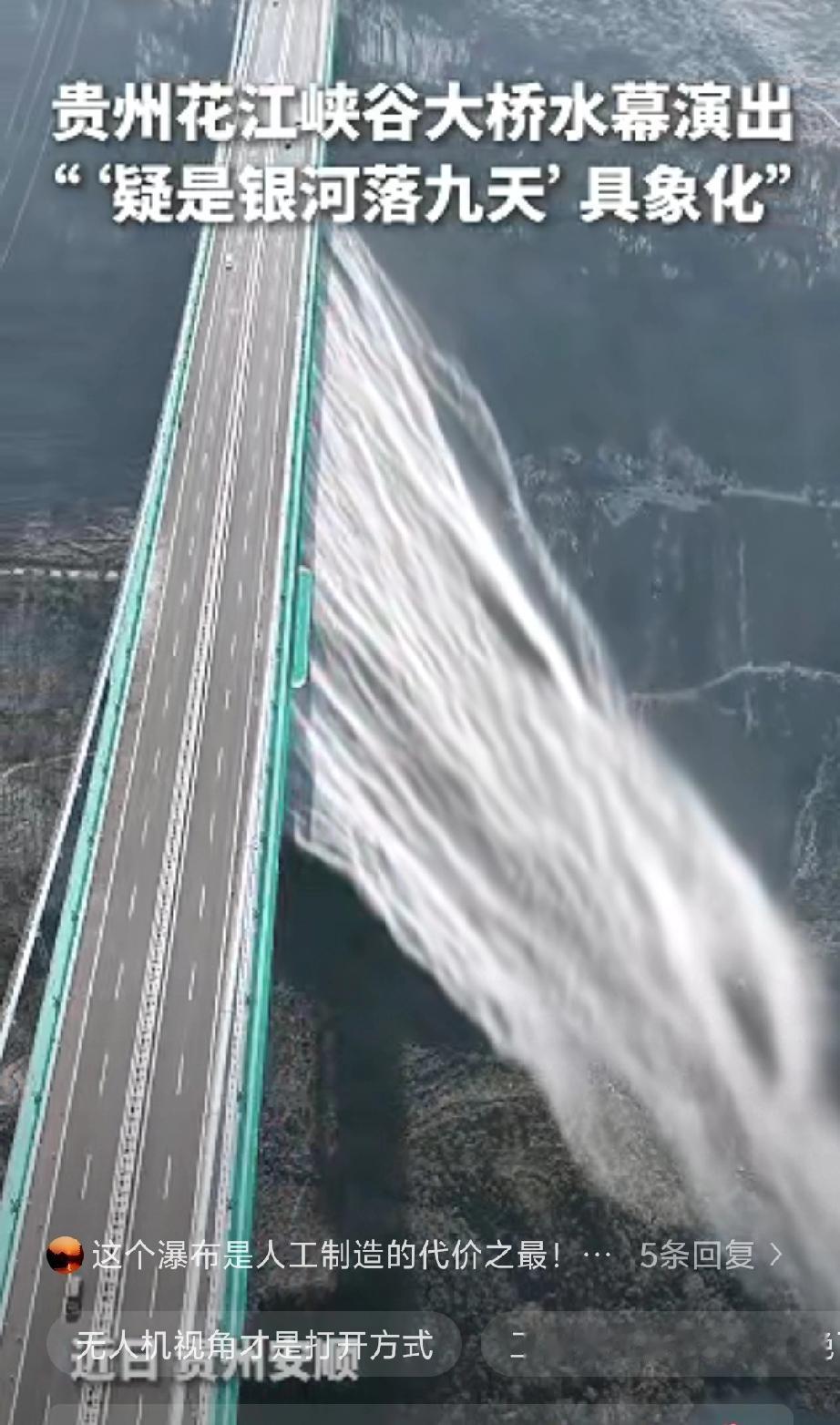 “上新华网了!”贵州,一男子参观花江峡谷大桥时,本想用无人机记录周边景观,不料,无人机飞到大桥高空时拍到绝美一幕:耸立云霄的大桥飞架南北,巨大的水幕从370米高的桥面一侧飞泻而下,阳光穿透水雾,七色彩虹显现,整座峡谷仿佛被施了魔法一样,美得不像话!网友:绝世美景! 林先生平时最大的爱好就是旅行,读大学时,他就给自己制定了未来10年的旅行计划,祖国山河大好,峰峦叠翠,让他痴迷。 大学那几年他没少受穷,每月生活费抠出一半,奶茶不喝、聚餐不去,连换季衣服都舍不得买,攒下的钱全换成了去往西南的车票。绿皮车坐过通宵,青旅上下铺挤过好几晚,别人觉得他瞎折腾,他却盯着窗外掠过的群山,心里满是踏实。他早把花江峡谷大桥列进必去清单,这座横跨“地球裂缝”的世界桥面高度最高峡谷大桥,625米的垂直高度、1420米的主跨跨度,光是听数据就足够让人心潮澎湃,他一定要亲手用镜头拍下这份中国基建的震撼。 到了观景台他手心直冒汗,峡谷风大,无人机升空时晃了好几下,他盯着操控屏连呼吸都放轻。原本只想拍大桥全景,镜头抬到桥面高度的瞬间,整个人直接愣住。370米高的水幕从桥面倾泻而下,不是刻意打造的网红景观,是大桥的喷淋系统在作业,万缕水流砸向谷底,水雾瞬间裹住整座桥体。正午阳光刚好穿透云层,斜斜扎进水雾里,一道完整的彩虹凌空架起,把钢铁铸就的大桥衬得温柔又梦幻,他愣了足足三秒才想起按录制键,生怕错过这转瞬即逝的画面。 这段视频火出圈一点都不意外,可很少有人知道,这绝美景象根本不是巧合。大桥建设时勘探出隧道岩溶水,建设者没浪费一滴水资源,专门修建4000立方米蓄水池完成存蓄,富余的水既用来养护桥面、灌溉周边山地果树,又顺势化身成这世界最高的人工水幕。实用功能与极致美景撞个满怀,这才是中国基建藏在钢筋水泥里的浪漫。 反观当下不少网红景点,为了博流量刻意堆砌人造景观,砸重金造毫无实用价值的噱头,既浪费资源又经不起时间考验,这种浮躁的造景模式,恰恰和花江峡谷大桥的建设理念背道而驰。不搞花架子、不做表面文章,把民生需求、生态保护、景观打造揉合在一起,这才是超级工程该有的样子。 林先生走了七年万里路,见过太多藏在山河里的中国奇迹。他总说现在很多人抱着手机刷遍全网风景,却不肯迈出家门一步,忘了脚下的土地有多壮阔。花江峡谷大桥从不是单纯的交通枢纽,它串起黄果树、万峰林等知名景区,带动深山里的民族手艺、特色农产品走出大山,桥旅融合的背后,是深山百姓的日子一步步越过越红火。 他的十年旅行计划还在继续,下一站依旧是西南的群山。他不用滤镜、不搞摆拍,只拍最真实的山河与人间,这份纯粹的热爱,刚好戳中了无数人心里对祖国大地的向往。超级工程的硬核实力,配上普通人的温柔记录,才让这绝世美景被更多人看见,才让中国基建的温度传得更远。 各位读者你们怎么看?欢迎在评论区讨论。