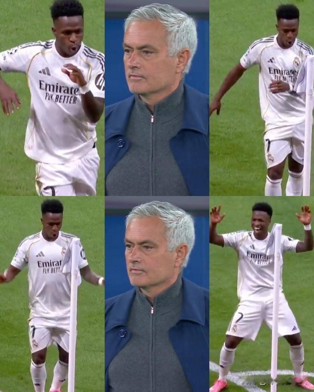 维尼修斯继续我行我素,穆里尼奥?他说的都是废话! 在本菲卡与皇马欧冠首回合比赛中,穆里尼奥曾批评过维尼修斯在首回合对阵本菲卡的比赛中打入那粒精彩进球后的庆祝动作,他表示那是对球迷以及主队不友好的表现。 今天,当维尼修斯再次攻破了本菲卡的球门后,他果然又一次在角旗附近跳舞庆祝。这位巴西球员完全不在乎“特殊的一个”说了什么,他毫不掩饰自己的庆祝动作。 为什么越来越多的人讨厌他?为什么越来越多的人讨厌皇家马德里队?难道是因为皇马的“双标”,显然他们球员的素质教育水平太差!