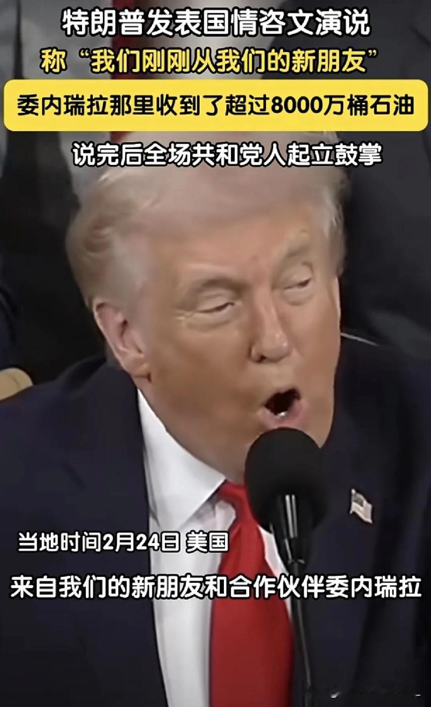 我是真服了, 看完特朗普最新的演讲, 这老头简直是把“厚黑学”玩到了极致! 张嘴就是委内瑞拉送了8000万桶石油,还管人家叫“新朋友”。 这就好比昨天还在掐架的仇人,今天突然成了给你送礼的亲戚,这逻辑转换都不带眨眼的? 更离谱的是他在台上在那自我陶醉,模仿老百姓求他:“总统先生,别赢了,我们实在受不了了!” 全场重复了五遍“我们赢得太多了”,那种自信,真的带有一种海盗般的匪气。 我就纳闷了,到底是怎样的心理素质,能让他对着全世界脸不红心不跳地胡扯? 这种颠倒黑白的本事,一般的政客真学不来,完全就是一场大型的行为艺术表演。 你说这以后还要什么外交辞令?全靠一张嘴编就完事了。 特朗普这场演讲,更像一场流量表演。昨天对立、今天称友,数据夸大、自我陶醉,看似气场拉满,实则经不起推敲。 靠编出来的赢不算赢,靠真诚与实力立足,才最硬气。 世界需要的是靠谱合作,不是即兴表演,理性看待,不吹不黑。