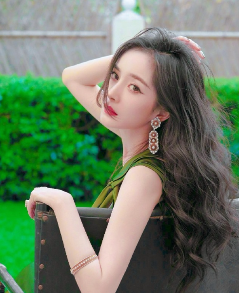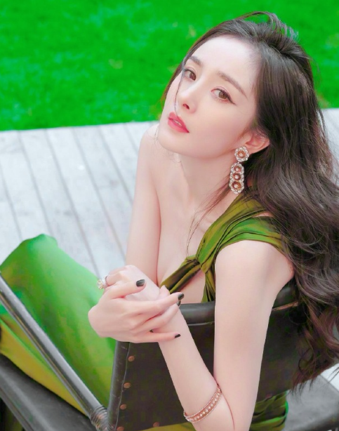 杨幂壁纸精选绿纱裙大长腿精致写真图集