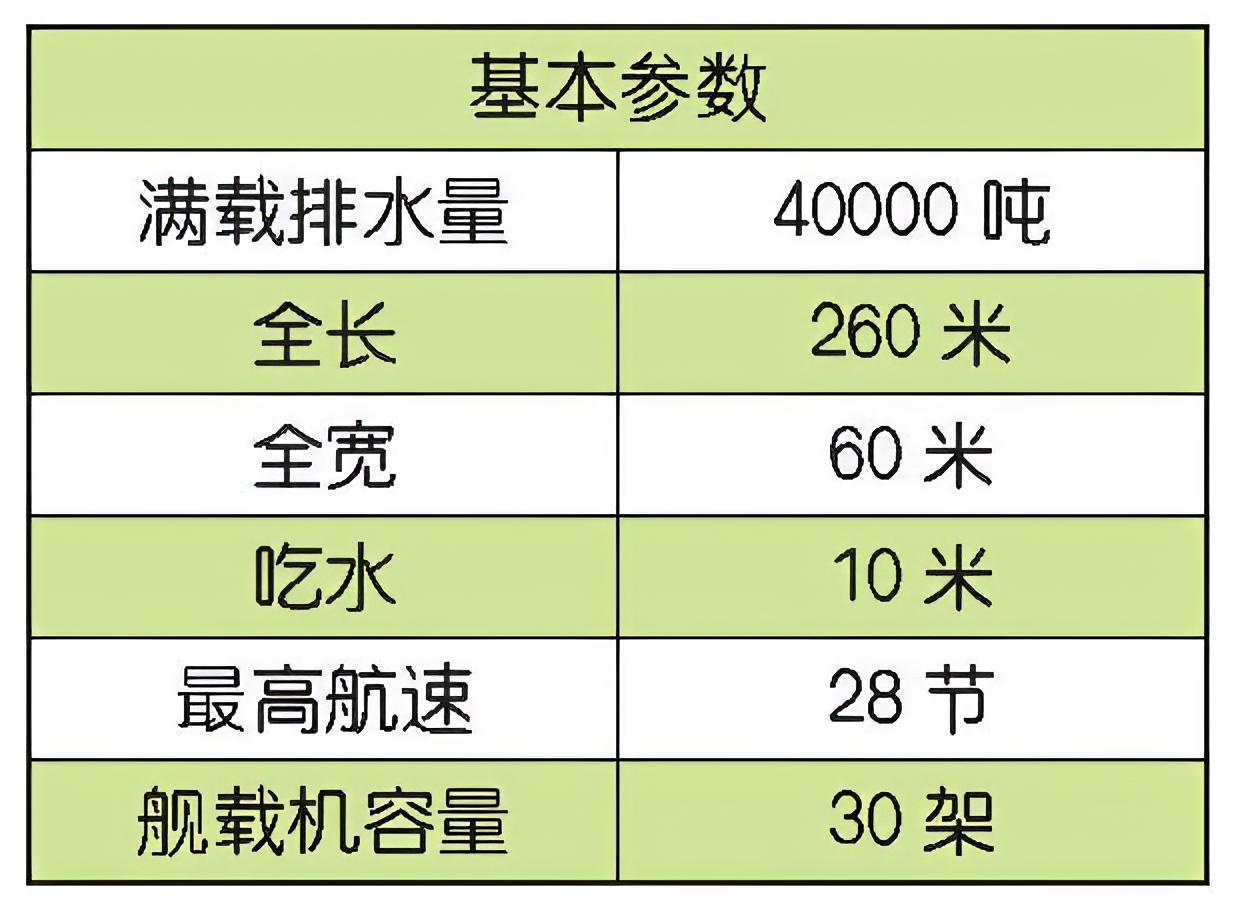“维克兰特”号航空母舰的舰体长度为260米,宽度为60米,高度相当于14层建筑,共有5层甲板,最上层为飞行甲板,其次是机库甲板,下面还有两层甲板和底层的支撑甲板。飞行甲板上设有2条约200米长的跑道,一条为专供飞机起落的滑橇式跑道;另一条为装备有3个飞机制动索的着陆跑道。