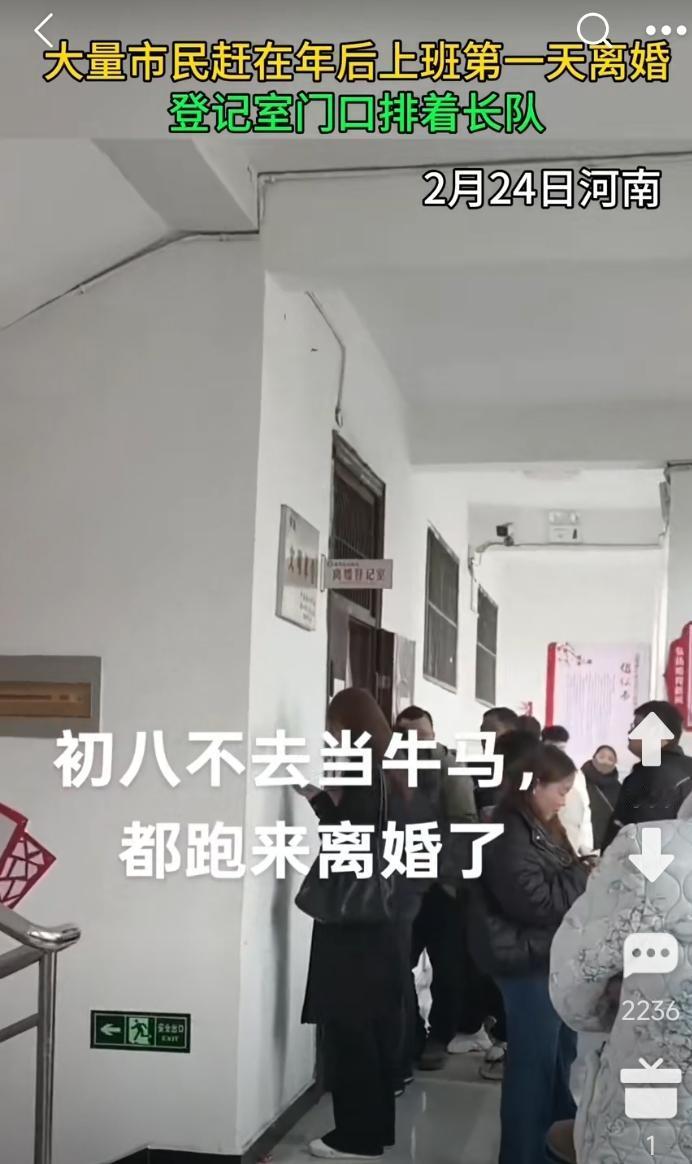 奇了个怪哉! 年后第一天,他们不去上班,却跑到离婚登记处,门口排起了离婚的长队。
