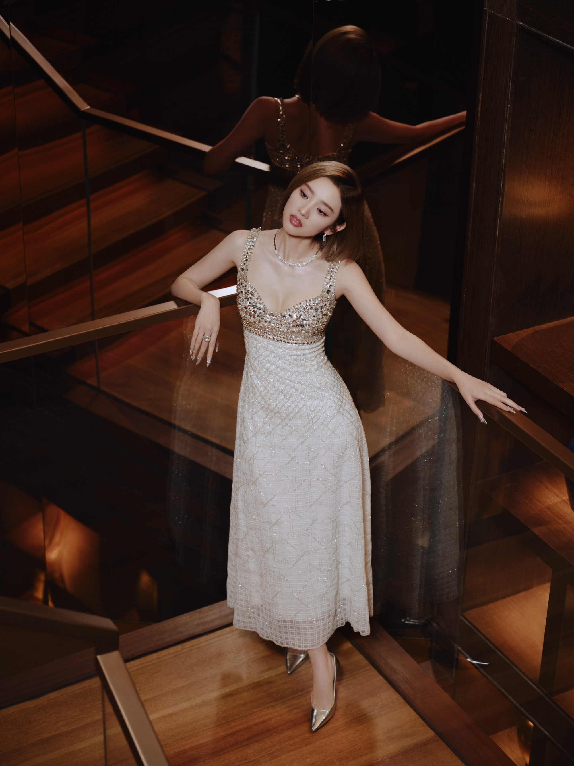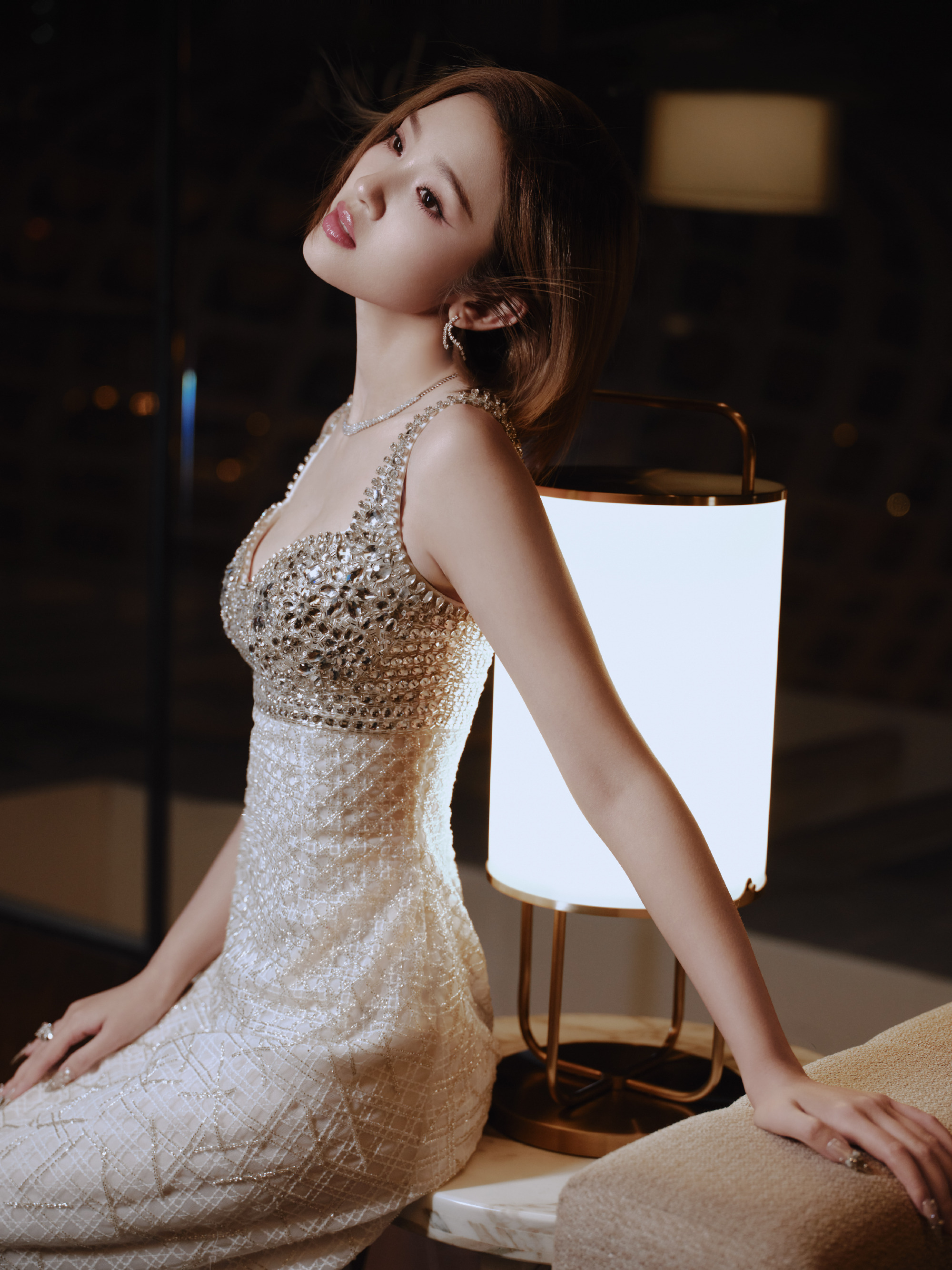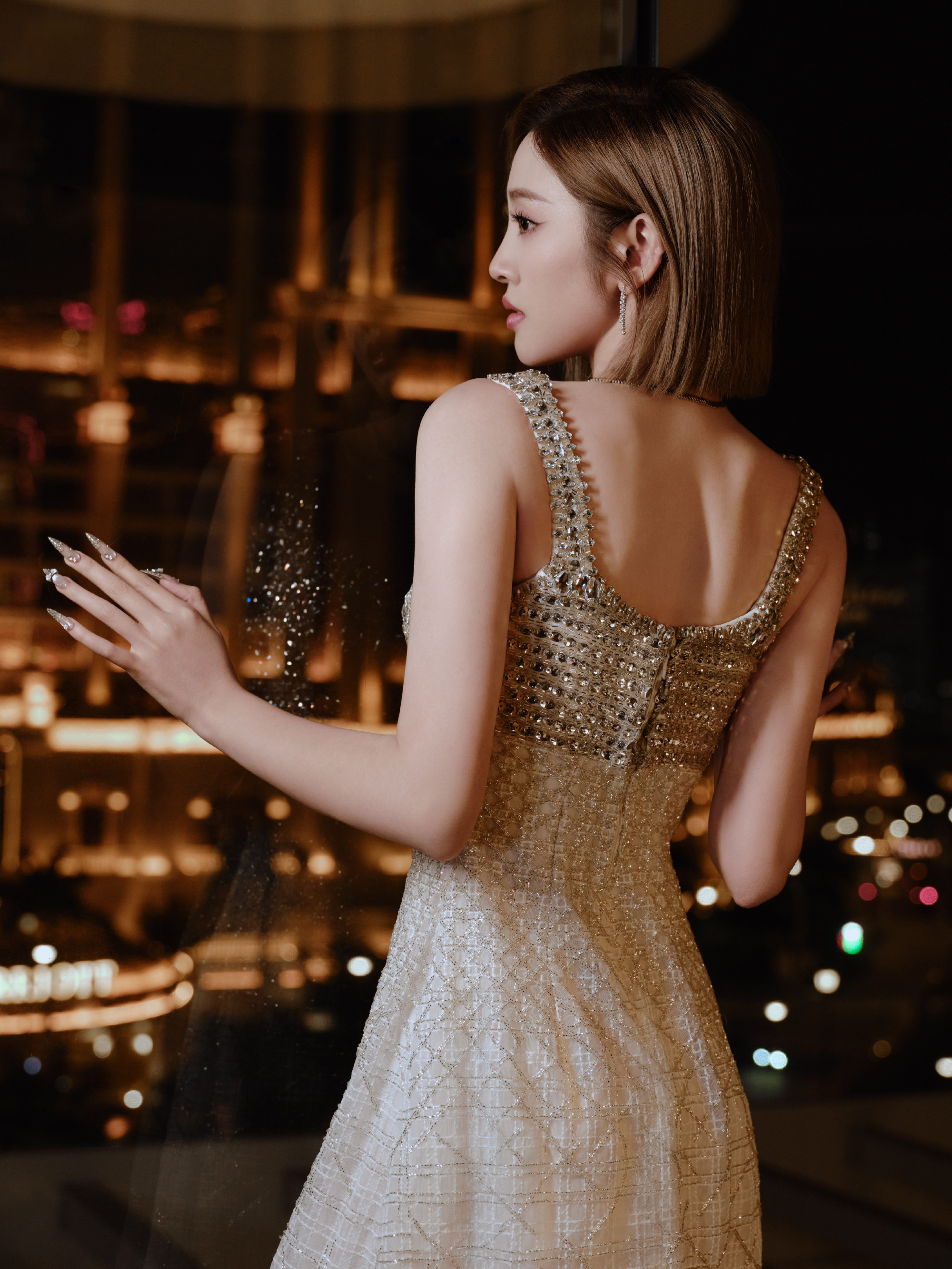 唐艺昕甄嬛传晚会直播造型来了,短发吊带裙,光影相映灿然如昨。唐艺昕