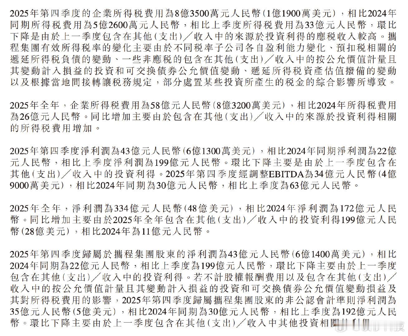 【携程四季度净利润43亿携程四季度净利润同增95%】2月26日,据鞭牛士,携程集团发布2025年第四季度财报。