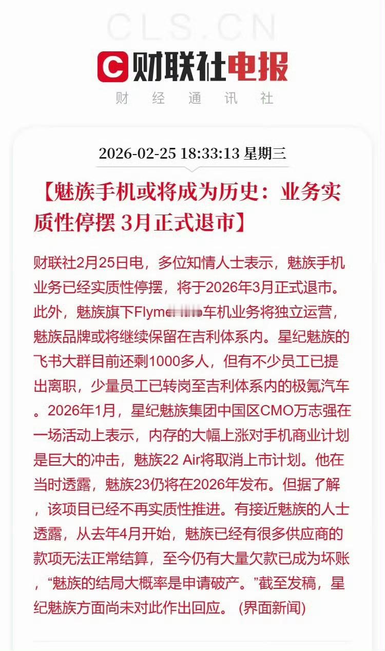 刷到魅族3月退出手机业务的消息,那个坚持小而美、把系统做干净的魅族,陪了好多人的青春,就这么悄悄落幕咯。魅族手机3月正式退市