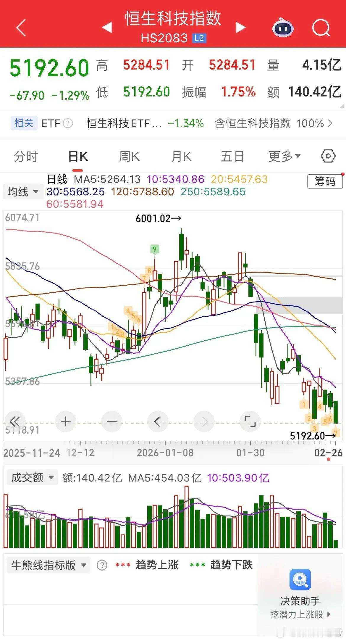 AI应用、机器人板块表现偏弱,相关标的持续调整;科创50指数跌多涨少,整体动能不足。港股恒生科技再度跳水,走势反复,波动较大。当前指数保持稳健,临近新高,但个股赚钱效应分化,多数账户收益承压。