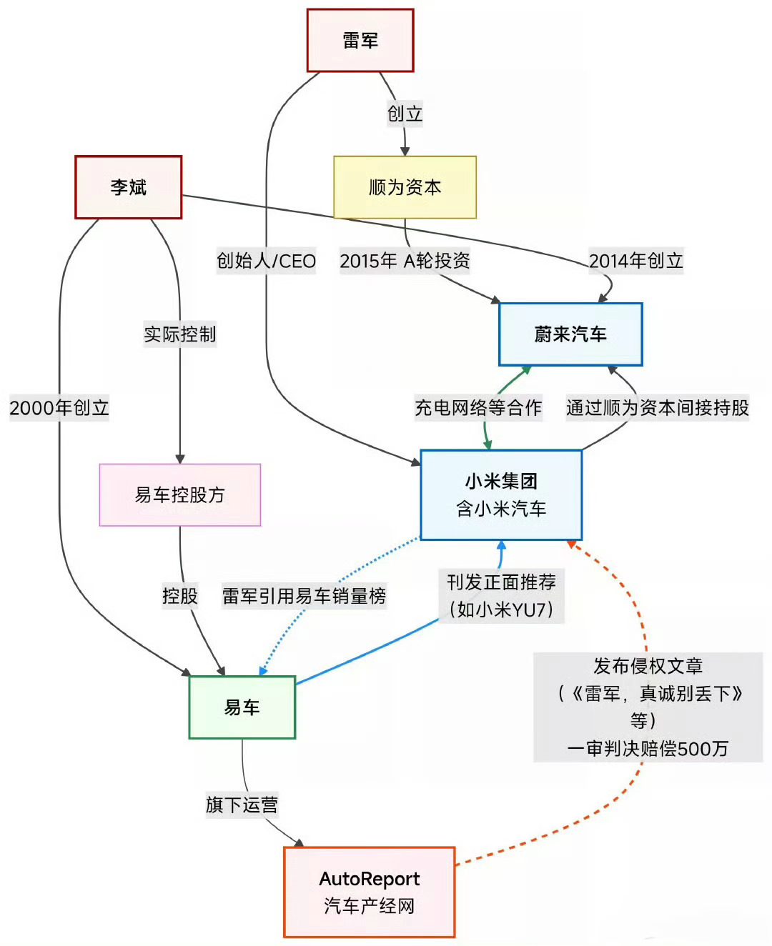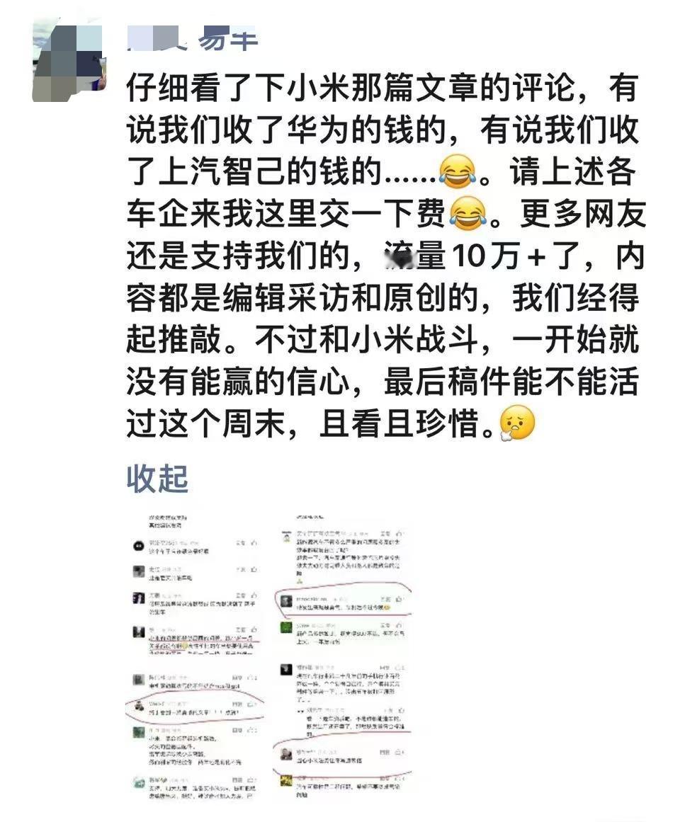 李斌早就脱离易车,不控股也不运营,再怎么深挖,也不能阴谋到李斌个人身上,再一个,李斌公开场合偶尔嘲讽下,不至于背地里玩阴的。按这个路径来,顺为还参股蔚来呢,难道是小米自导自演?不可能,500万的起诉,而且法院已经一审判决,说自导自演太荒谬了。我就好奇一点,易车之前可是吹小米的,旗下媒体长期贬损小米,这种做法令人作呕揭秘被小米索赔500万账号关联公司