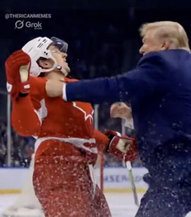 流氓至极!美国总统老特是真没底线了! 当地时间 2 月 23 日,他在社交媒体上,发了一段无厘头 AI 合成的视频。 这段视频,画面里的场景是米兰冬奥会男子冰球决赛的赛场,特朗普直接把自己P成了美国冰球队的一员,穿着冰球服、踩着冰鞋,在赛场上横冲直撞,那架势,比真正的运动员还嚣张。 视频里的戏码,说出来都让人觉得离谱。特朗普化身的球员,不光不按规则打球,还全程耍横,走着走着就撞翻了一名加拿大球员,对方还没爬起来,他又冲上去,直接脱下手套,赤手空拳就往另一名加拿大球员脸上揍。 更可笑的是,最后他还装模作样地挥杆进球,硬生生把自己塑造成了美国队夺冠的最大功臣,仿佛那枚奥运金牌,不是运动员拼出来的,是他靠“揍人”赢来的。 网友看了都笑喷,这哪里是冰球比赛,分明是特朗普的个人耍横秀。 可能有人会说,他是不是闲得没事干,随便发个视频解闷?真不是这样,这背后全是算计,每一步都藏着小心思,而且这事还得往前倒一天说,才能看明白全貌。 前一天,也就是2月22日,米兰冬奥会男子冰球决赛,真刀真枪地打了一场,美国队拼到加时赛,才以2:1险胜加拿大队,这可是他们时隔46年,再次拿到这个项目的奥运金牌,按理说,好好庆祝就完事了。 可美国偏不,赢了比赛还不够,非要搞些下三滥的操作,在特朗普发AI视频之前,白宫就先一步惹了争议。 白宫发了一张图片,上面是一只白头鹰正猛扑一只加拿大雁,懂点常识的都知道,白头鹰是美国的象征,加拿大雁则代表着加拿大,这张图的挑衅意味,明眼人一看就懂。 这张图背后还有旧怨,一年前,加拿大在四国冰球赛中击败美国夺冠,当时的加拿大总理特鲁多就放了狠话,说“你们夺不走我们的国家,也夺不走我们的运动”。 那时候特朗普就多次放话,说加拿大应该成为美国的第51个州,双方的梁子早就结下了,如今美国冰球队赢了,白宫就用这张图隔空挑衅,特朗普更是直接发AI视频“动手”,把外交口水战,升级成了“数字斗殴”。 要知道,特朗普今年已经80岁了,前不久还在一场活动中说,自己不知道还能活多久,毕竟近三年内,他已经三次遭遇刺客或者潜在的生命威胁,就连海湖庄园都有人闯进去过。 可就是这样一个嘴上说自己不知道能活多久的人,转头就用AI把自己塑造成了身手矫健的冰球运动员,一边装可怜,一边耍威风,反差大到让人咋舌。 其实特朗普这么做,根本不是为了庆祝夺冠,说白了就是为了自己的政治目的,他一直擅长用这种博眼球的方式吸引关注,把体育和政治绑在一起,靠贬低别人、抬高自己,拉拢支持者。 而且这也不是美国第一次用AI搞事情,之前白宫还发过AI合成的图片,假装老特在格陵兰岛和企鹅漫步,结果闹了笑话,格陵兰岛根本没有企鹅,被网友群嘲了一顿。 说到底,这场AI视频闹剧,不光丢了特朗普自己的脸,也丢了美国的风度,体育本该是超越政治、连接彼此的桥梁,却被他当成了泄私愤、搞政治操弄的工具,实在让人不齿。 真正的强大,从来不是靠嘴说,也不是靠AI合成的虚假画面,而是靠实力和风度,美国队赢了冰球比赛,本该赢得尊重,可因为特朗普的一番操作,反倒落了个没风度的骂名,得不偿失。 希望这样的闹剧不要再发生,也希望体育能回归本质,远离政治操弄,让每一份努力都能被尊重,让每一场比赛都能体现真正的体育精神。 大家对此有什么看法呢?欢迎各位在评论区留言!